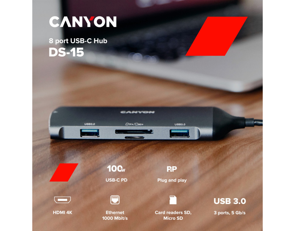 Цей хаб – один із небагатьох, здатних зчитувати 4 типи карток. У нього вбудовані роз'єми для карток SD, SDHC, SDXC і TF. Крім того, ви можете підключити монітор, навушники або стовпчики через міні-джек 3.5 мм. Для периферійних пристроїв передбачено два порти – USB-A 3.0 та USB-A 2.0. Роз'єм для заряджання USB-C PD потужністю до 100 Вт дозволяє заряджати підключений пристрій з оптимальною швидкістю. За допомогою хаба можна підключитись до мережі через Gigabit Ethernet. Крім того, пристрій сумісний із Google Media Player Chromecast. Легкий та міцний корпус хаба виготовлений з алюмінію, що перешкоджає виникненню перешкод у передачі сигналу. Щоб використовувати хаб, не знадобиться додаткове програмне забезпечення, ні спеціальні навички. Компактне та функціональне вирішення безлічі завдань! |