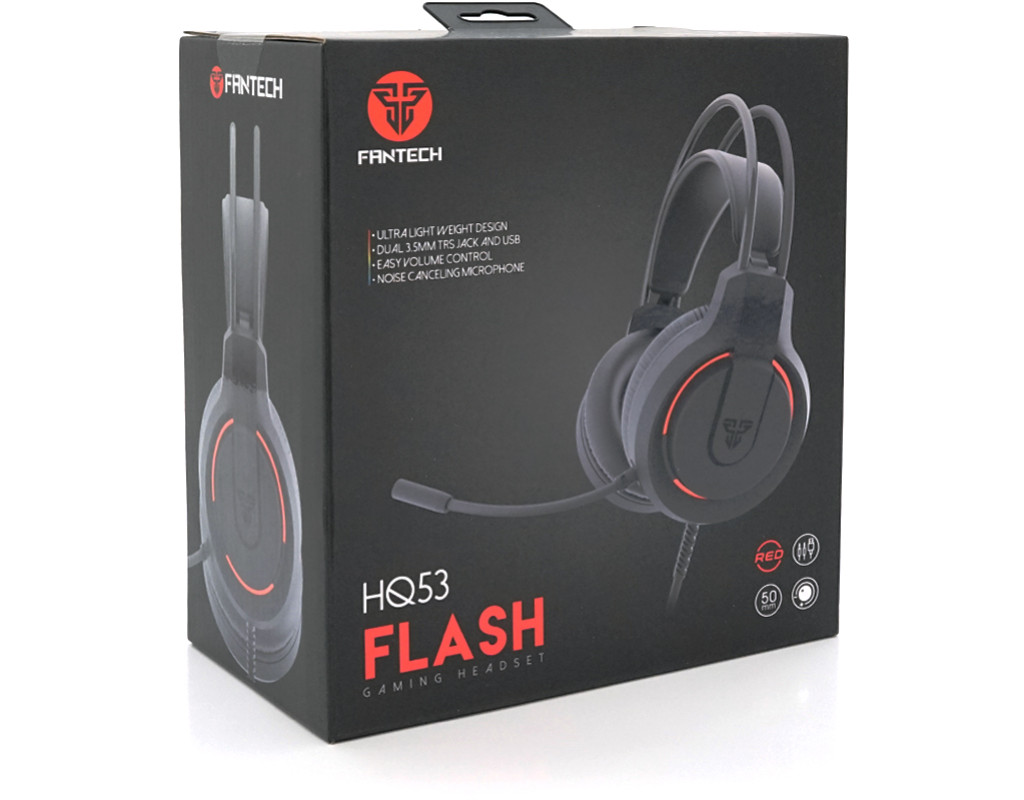 | Ігрові навушники з мікрофоном Fantech HQ53 FLASH, 7.1-Channel, USB, Black, Color Box |