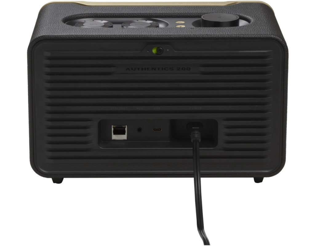 | Акустична система JBL Authentics 200 (JBLAUTH200BLKEP) — втілення високоякісного звуку і сучасних технологій. Ці бездротові акустичні колонки напольного типу створені для тих, хто цінує звучання та стиль. З потужністю в 90 Вт та досконалим стереозвуком 2.0 канали, JBL Authentics 200 наповнить будь-який простір у вашому домі живим і яскравим звуковим відчуттям. В основі звучання — пара 25мм високочастотників, які чудово передають дрібні деталі ваших улюблених треків, та повнодіапазонний 5-дюймовий низькочастотник із пасивним динаміком. Ці компоненти забезпечують ідеальний аудіобаланс, даруючи музичне блаженство кожній мить. Дизайн JBL Authentics 200 натхнений класикою, він втілює у собі поєднання ретро-естетики і сучасних елементів: алюмінієва рама, корпус, що нагадує шкіру, та переосмислена решітка Quadrex роблять цей продукт вишуканим доповненням інтер'єру. Крім стильного вигляду, система пропонує широкий вибір підключень: Wi-Fi, Bluetooth 5.3, AirPlay, а також роз'єми USB-C та Ethernet. Для любителів потокового аудіо JBL Authentics 200 пропонує зручність бездротового підключення через Spotify Connect, вбудований Chromecast та можливість використовувати Alexa Multi-Room Music (MRM). Інтуїтивно зрозумілі елементи керування дозволяють регулювати гучність, баси і високі частоти за допомогою голосових помічників Google Assistant та Amazon Alexa, якими можна користуватися одночасно. Не обмежуйте себе у виборі — управління ще ніколи не було таким зручним завдяки додатку JBL One. Функція мультикімнатного відтворення дозволяє інтегрувати кілька динаміків JBL Authentics у єдину аудіосистему у вашому помешканні, створюючи атмосферу свята в кожній кімнаті. Опція автоматичного самоналаштування підлаштовує звучання до вашого середовища і забезпечує не лише якість звуку, але й максимальний комфорт. JBL Authentics 200 — це більше ніж просто акустична система. Це унікальний синтез інноваційних технічних рішень і естетичного дизайну, який об'єднує в собі функціональність та розкішність. З нею ваші музичні вподобання зазвучать по-новому, ви отримаєте насолоду від кожної мелодії і кожної ноти. |