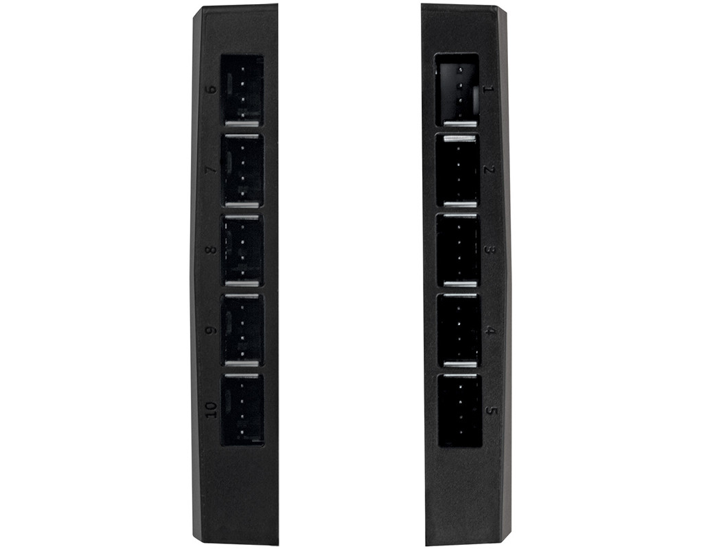 Концентратор вентиляторів оснащений клейкими накладками та магнітними стрічками, що дозволяє розмістити його у будь-якому місці корпусу. Він з’єднується з материнською платою лише одним кабелем із живленням через SATA. Таким чином, ви можете обійтися без додаткових кабелів та вільно розмістити його у прихованій частині корпусу. Синхронне керування вентиляторами Заданий ШИМ-сигнал синхронно передається на всі вентилятори, підключені до концентратора Case Fan Hub. Оберти першого вентилятора зчитуються та повертаються у вашу систему. Розширюйте вентиляцію Навіть якщо на материнській платі недостатньо отворів для вентиляторів, концентратор корпусних вентиляторів розширить вашу систему ще на дев’ять слотів для корпусних вентиляторів. Зовнішнє джерело живлення Вентилятори живляться безпосередньо від блока живлення через SATA Power. Завдяки цьому немає втрат напруги на швидкості обертання вентиляторів, а також забезпечується плавна безперебійна робота. |
