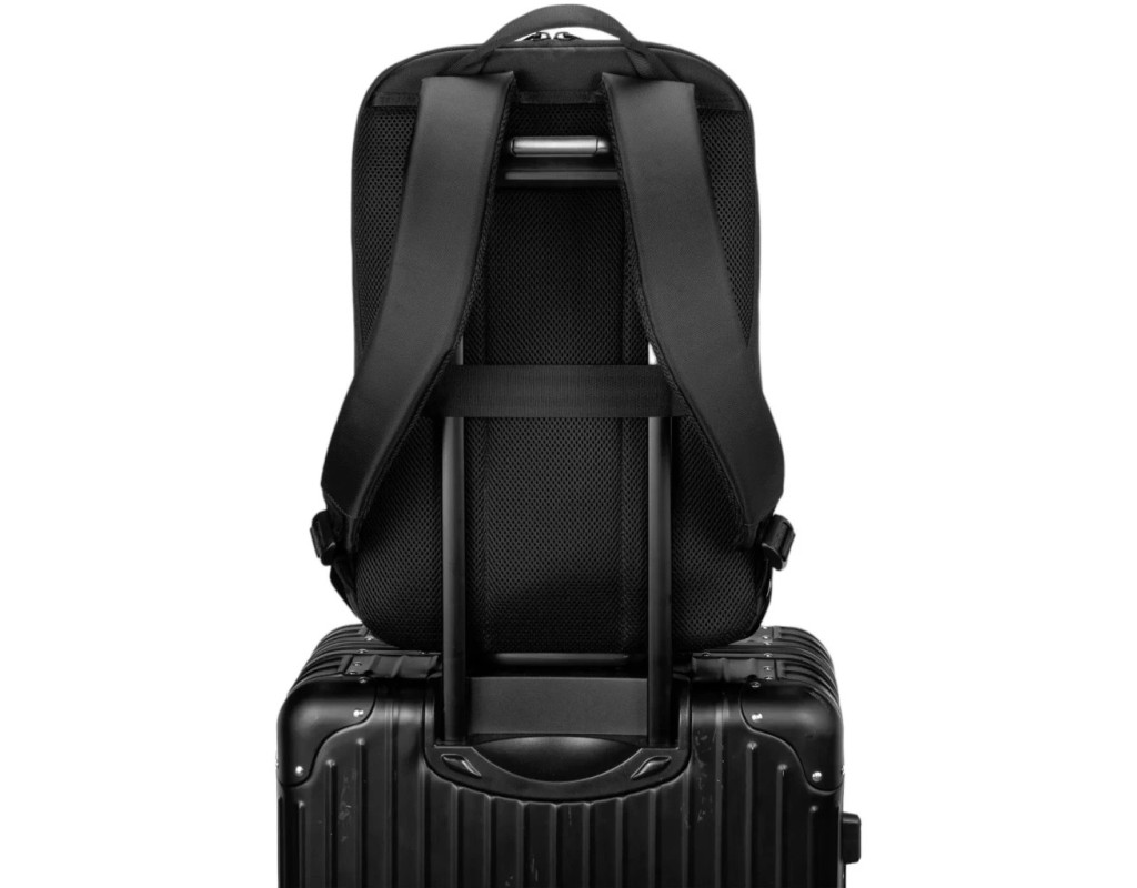 - На спинці є ремінь для кріплення рюкзака до ручки валізи, завдяки чому його зручно брати з собою у подорожі.