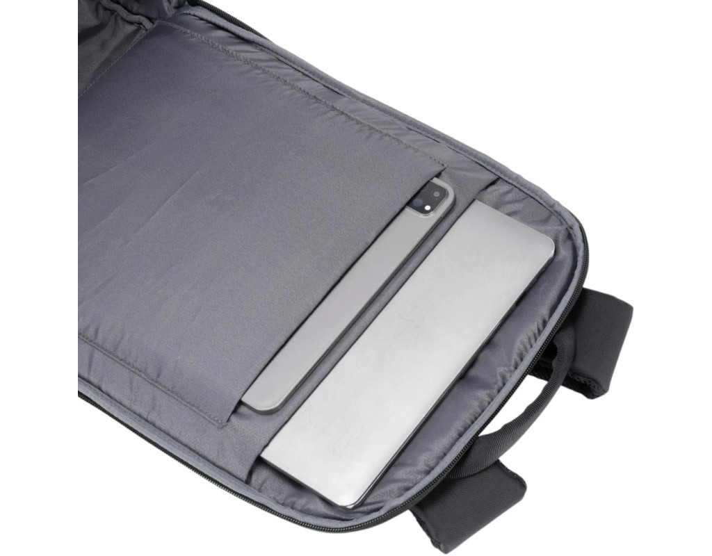 - У рюкзаку є: 1 велике відділення на блискавці. Усередині великого відділення передбачений відсік для ноутбука (стінки відділення мають додаткове ущільнення для захисту лептопа від ударів), кишеню для планшета (стінки м'які, ущільнені) та відсік для інших речей, а також усередині відділення - 2 внутрішні кишені для дрібних речей, смартфона або гаманця .
