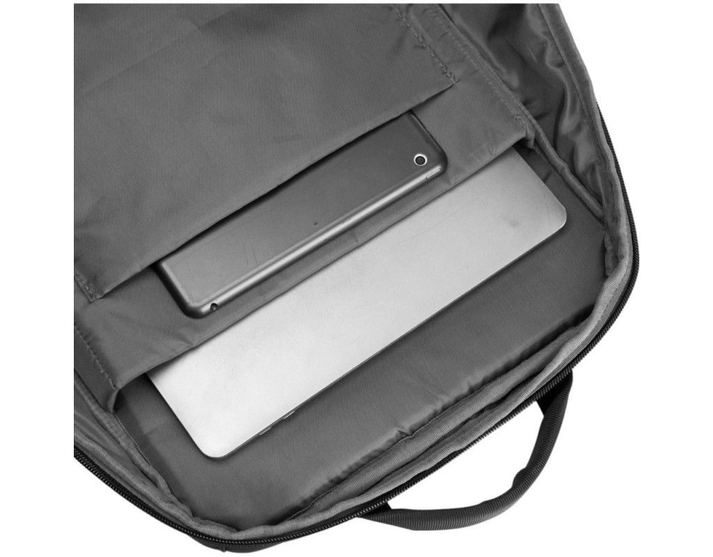• У рюкзаку є: 2 зовнішні кишені на прихованих блискавках. 1 велике відділення на блискавці. Усередині великого відділення передбачений відсік для ноутбука (стінки відділення мають додаткове ущільнення для захисту лептопа від ударів), кишеню для планшета (стінки м'які, ущільнені) та відсік для інших речей, а також усередині відділення - 2 внутрішні кишені для дрібних речей, смартфона або гаманця .