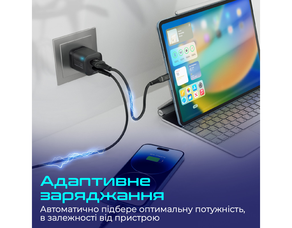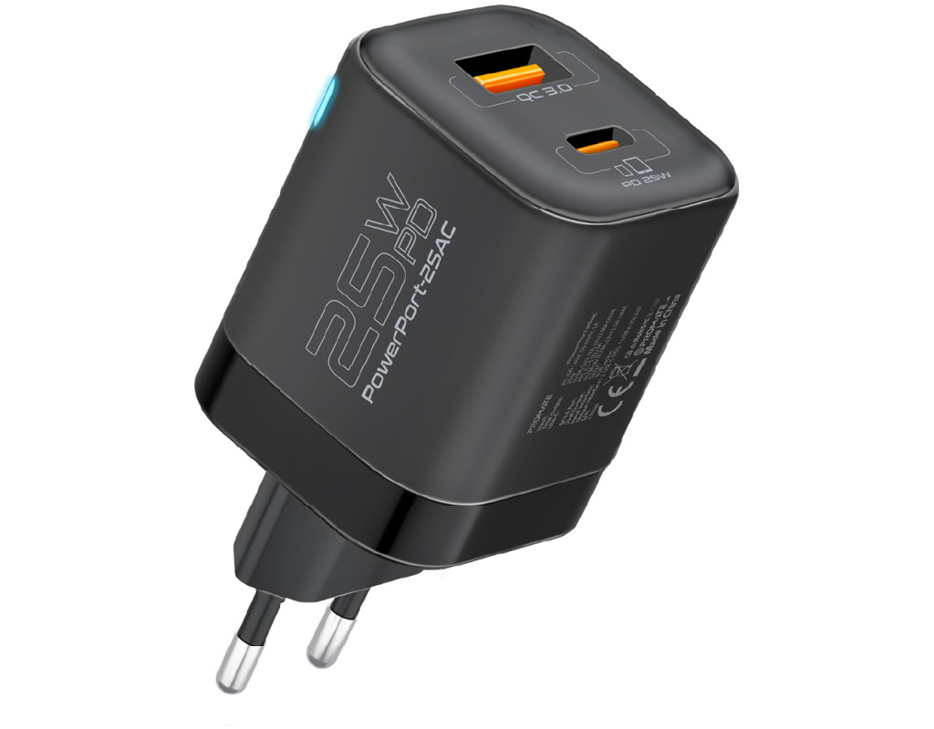 | Підтримка технологій Power Delivery та Quick Charge 3.0, максимальна безпека та ультракомпактний форм-фактор. Promate PowerPort-25AC з легкістю зарядить будь-який гаджет на потужності 25W через USB-C та USB-A порт.