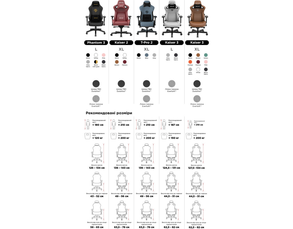 65-міліметрове колесо покрите поліуретаном (King Size). Шкіра ПВХ AD+ Plus використовується на висококласних кріслах AndaSeat, пропонуючи міцно проклеєну шкіру ПВХ зі стійкістю до подряпин і плям. Високоякісний матеріал був виготовлений з урахуванням повного комфорту для людини. Його не тільки легко чистити, але він набагато міцніший, що дає змогу зберегти форму. Шкіра ПВХ AD+ Plus не містить шкідливих елементів, ідеально підходить для дорослих і дітей.