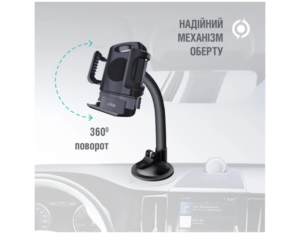 Компактний універсальний механічний автотримач Piko Holder M01LF — зручно й безпечно кріпиться за допомогою присоски на лобове скло або приладову панель авто з урахуванням оптимального кута нахилу. Довга гнучка ніжка дозволяє повертати та згинати тримач у будь-якому напрямку. Тримач оснащений "головкою", яка має кут оберту в 360 градусів, дозволяючи використовувати смартфон у будь-якому зручному положенні. М'який матеріал забезпечує обережне користування, тому не пошкоджує поверхню вентиляційної решітки авто і безпечний для задньої панелі пристрою. Особливості: