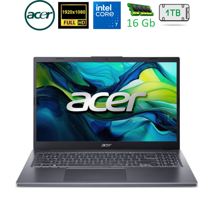 Acer Aspire 15 A15-51 — ноутбук, який поєднує високу продуктивність, стриманий дизайн та зручність використання. Завдяки своїм характеристикам він забезпечить ефективні робочі сеанси, веселі мультимедійні розваги та дозволить без проблем виконувати інші завдання. 15,6-дюймовий IPS-дисплей з роздільною здатністю Full HD забезпечує високу якість зображень та відео, а матове покриття збереже контрастність та кольоровідтворення картинки навіть під час перегляду при яскравому світлі. Рамки екрана доволі тонкі, що робить дизайн ноутбука більш ергономічним і комфортним в експлуатації. Пристрій працює на базі процесора Intel Core 7 150U, який дозволить розв'язувати робочі питання без затримок та гальмувань системи. За швидкодію системи відповідає оперативна пам'ять DDR5 та місткий SSD-накопичувач, який надасть змогу зберігати велику кількість даних і швидко маніпулювати ними. Клавіатура ноутбука зручна для набору тексту, адже має розділені клавіші. Також вона оснащена цифровою панеллю для вводу числових даних, що оцінять фінансисти, бухгалтери та студенти економічних факультетів, тобто користувачі, які часто мають справу з цифрами. Тачпад допоможе комфортно працювати без мишки, наприклад, у дорозі чи поза офісом. Під’єднуйте або заряджайте найновіші пристрої за допомогою широкого набору інтерфейсів. Ноутбук також підтримує сучасний стандарт Wi-Fi 802.11ax, а тому користувач зможе без проблем користуватися швидким з'єднанням з мережею, працюючи ефективно та без перебоїв. Acer Aspire 15 A15-51 — ноутбук для легкого вирішення найскладніших завдань. |
