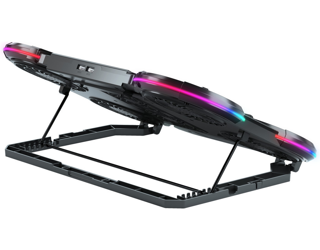 CP770 також пропонує широкий спектр налаштувань для вашого зручного використання. З сімома рівнями висоти ви можете вибрати оптимальне положення для вашого ноутбука. Щоб створити неперевершену атмосферу, ми додали десять режимів RGB-підсвічування, які можна налаштувати за вашим бажанням.