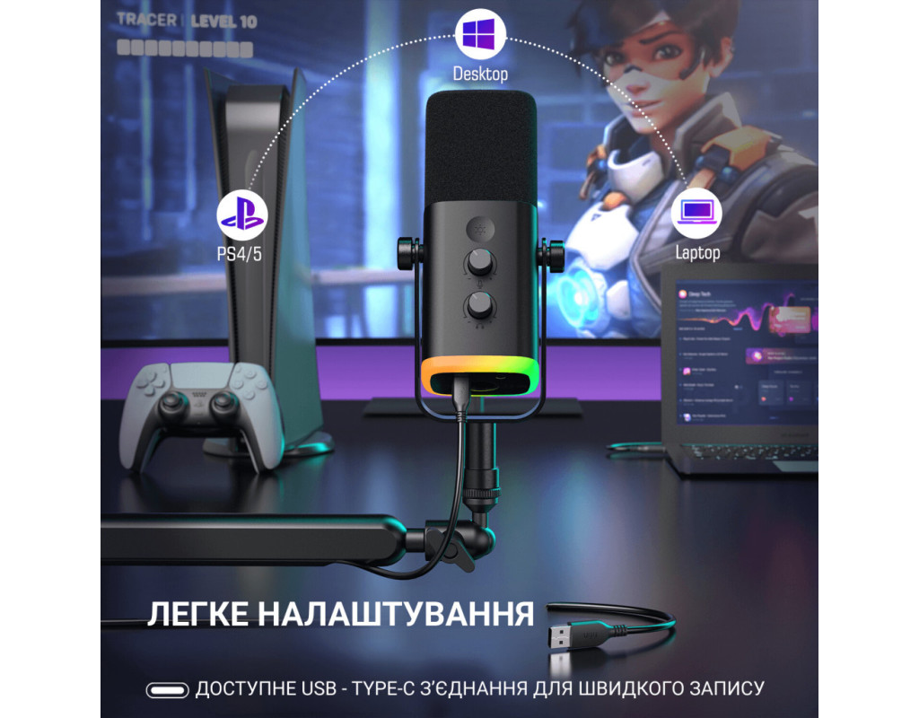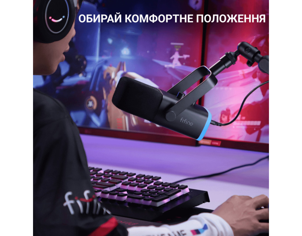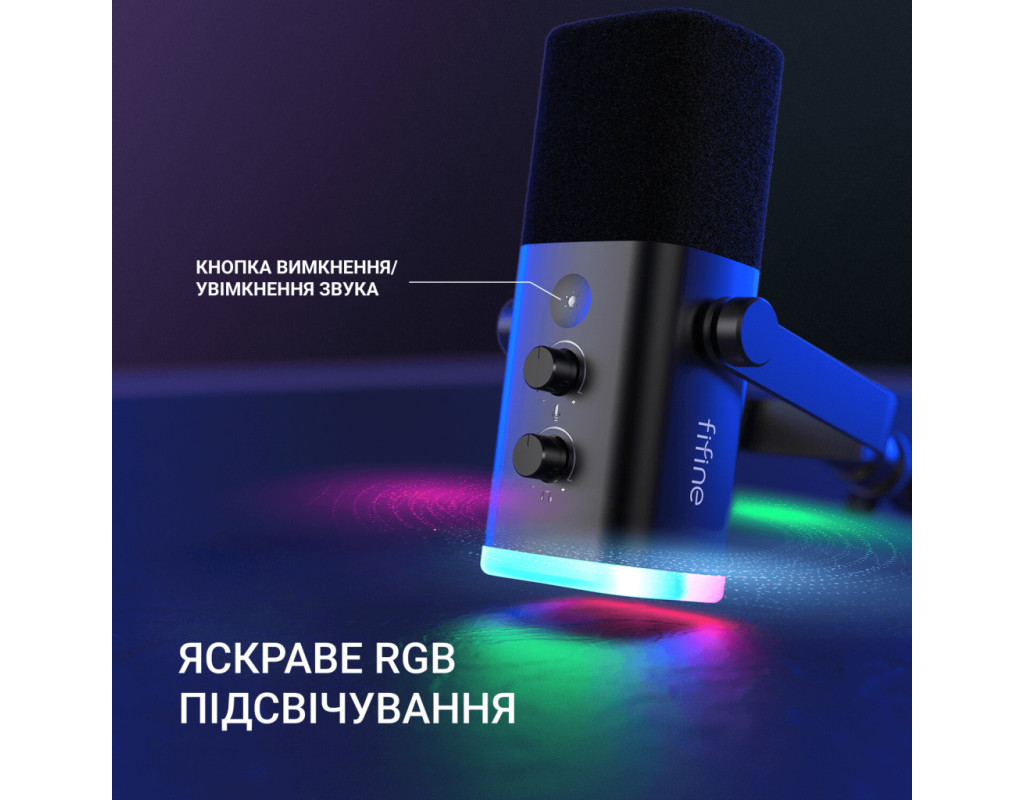 Динамічний мікрофон Fifine TAM8 з USB та XLR підключенням має здатність передавати ідеальний звук у неідеальних умовах і відмінно підійде для запису подкастів, стримів, озвучки, проведення трансляцій. Металевий пантограф з вбудованим сховищем для дротів є комфортним рішенням для організації вашого простору, а яскраве RGB підсвічування додасть атмосфери твоїй грі. ФункціональністьTAM8 відрізняється своєю універсальністю і здатністю передавати чіткий звук у різних умовах. Його кардіоїдний малюнок спрямованості забезпечує якісний звуковий запис, навіть у шумних середовищах. РегулюванняМікрофон оснащений кнопкою вимкнення мікрофона та кнопкою регулювання RGB підсвічування, що дозволяє вам налаштувати його відповідно до вашого настрою. Зручний роз'єм для навушників і двома регуляторами гучності, розташованими знизу мікрофона, забезпечує максимальний комфорт у користуванні. ПідключенняБлок живлення від USB та XLR забезпечує стабільний зв'язок і високоякісний звуковий сигнал. Роз'єм XLR дозволяє мінімізувати власний шум, забезпечуючи чистий звуковий запис. Оберіть мікрофон Fifine TAM8 і насолоджуйтеся якістю звуку та зручністю використання на новому рівні. TAM8 — ваш надійний помічник у світі аудіо звукозапису. |