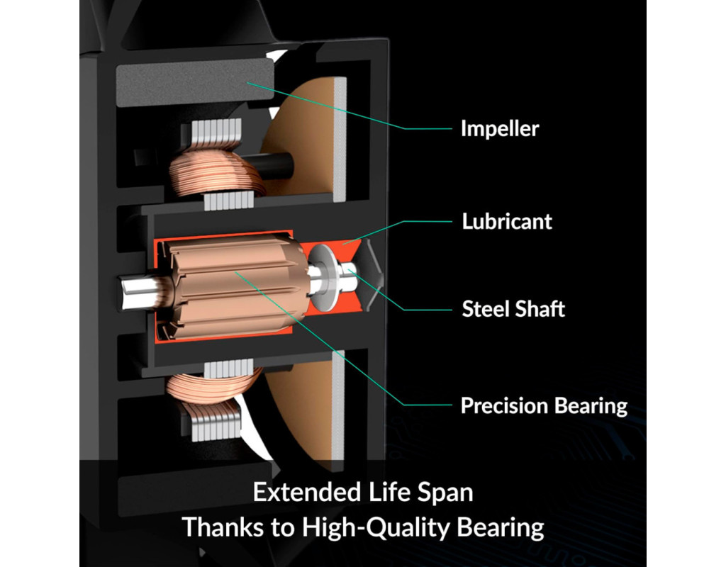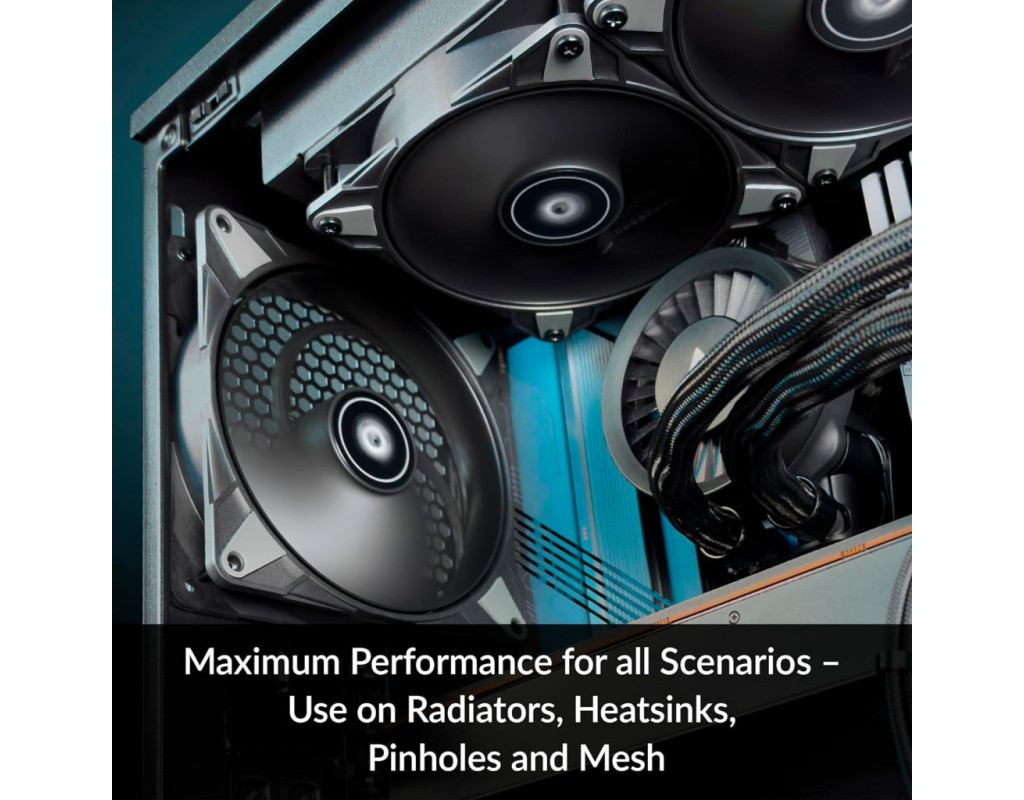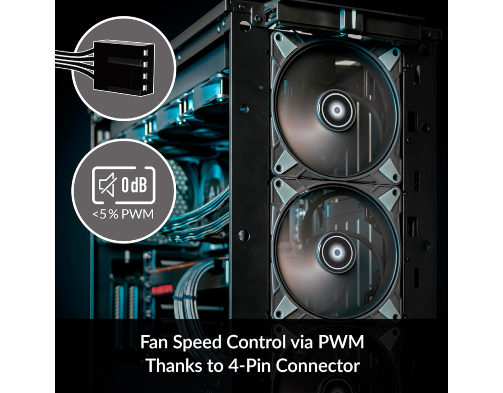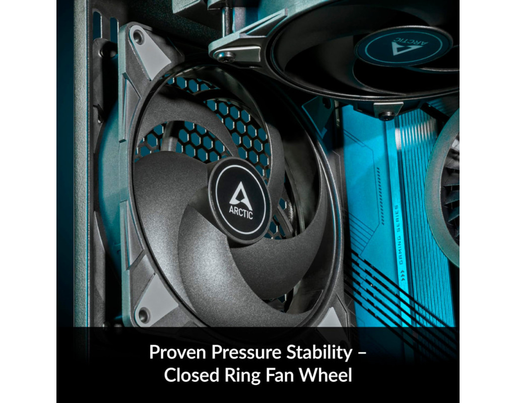 | Надзвичайно широкий діапазон швидкостей Розвиваючи успіх P14 PWM, P14 Max розширює діапазон регульованих швидкостей до вражаюче широкого діапазону - від 400 до 2800 об/хв. Це забезпечує безшумну роботу за низької витрати повітря, а також безпрецедентний рівень продуктивності під час роботи з радіаторами. P14 Max значно підвищує продуктивність наявних систем повітряного та водяного охолодження. Максимальна продуктивність - без компромісівP14 Max забезпечує сфокусований повітряний потік і високий статичний тиск, що робить його придатним для всіх сценаріїв. Вентилятор оптимізований для використання на радіаторах, тепловідводах, отворах і сітках. Отже, P14 Max - ідеальний вентилятор для ентузіастів і професіоналів, яким потрібна максимальна продуктивність і довгий термін служби. Режим 0 дБ - нульові обертиШвидкість обертання вентилятора може бути знижена до нуля за допомогою ШІМ. Це забезпечує безшумну роботу в режимі IDLE і водночас гарантує максимальну продуктивність за потреби. Отже, P14 Max забезпечує незрівнянно динамічне регулювання швидкості, що дає змогу ідеально регулювати повітряний потік у кожному конкретному випадку. Покращена стабільністьP14 Max має закриту конструкцію колеса вентилятора. Перевага такої комбінації коліс вентилятора - стабільність тиску без компромісів. У сценаріях із високим опором тиску та високими швидкостями силовий вплив розподіляється рівномірно по всьому колесу вентилятора та забезпечує обертання з низьким рівнем вібрації за збереження високого статичного тиску. Максимальна плавність, мінімальна вібраціяНавіть на низьких швидкостях звук роботи нового двигуна Arctic ледь помітний. Завдяки синусному намагнічуванню новий двигун створює лише близько 5 % вібрації від комутації звичайного двигуна постійного струму без фільтра. Гумові прокладки, встановлені по кутах, додатково гасять залишкові вібрації, спричинені підвищеними обертами. Практично безшумний завдяки гідродинамічному підшипникуP14 Max оснащений перевіреним гідродинамічним підшипником Arctic. Це забезпечує практично безшумну роботу на низьких швидкостях, про яку так просили клієнти. При цьому на максимальних швидкостях гарантується потужна продуктивність. |