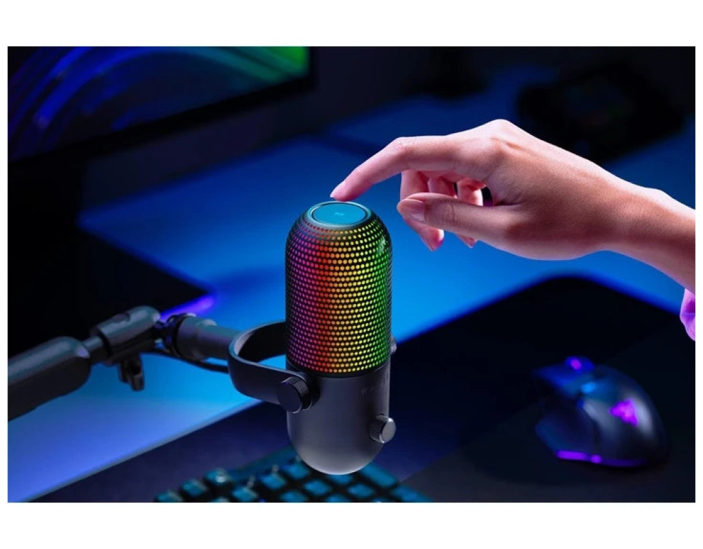Мікрофон Razer Seiren V3 Chroma — це не лише відмінний інструмент для стрімінгу та потокових трансляцій, але й елемент, який може підкреслити вашу індивідуальність завдяки своїй яскравій RGB-підсвітці. Цей USB-мікрофон відзначається потоковим підсвічуванням, що дозволяє вам контролювати освітлення і підкреслювати ваш голос за допомогою 10 зон RGB. За бажанням ви можете обрати один серед різноманітних запропонованих ефектів, які відповідатимуть вашому настрою та атмосфері ваших ігор. Легке торкання верхньої частини мікрофона дозволяє вам миттєво вимкнути або умикнути звук. Також ви можете налаштувати функціональність кнопки для подвійного або потрійного торкання, щоб змінювати налаштування підсвітки. Довге натискання дозволить вам змінити ефект підсвічування та гучність мікрофона. Завдяки додатковому програмному забезпеченню Synapse ви зможете налаштувати роботу мікрофона, включаючи додаткові параметри підсвітки та налаштування кнопки вимкнення звуку. Мікрофон має світловий індикатор, який показує, коли звук вимкнено, що особливо зручно для перерв у розмові чи під час використання Discord. Ви можете налаштувати світлові ефекти Chroma відповідно до вашого бажання, використовуючи доступні варіанти в програмному забезпеченні Synapse або додаткові модулі Chroma для розширених можливостей. |