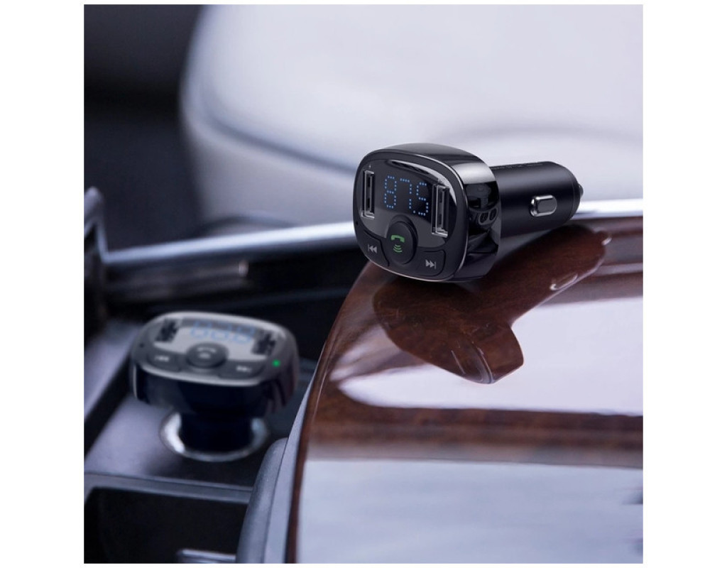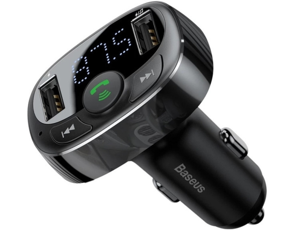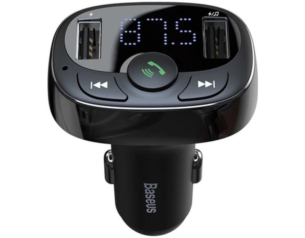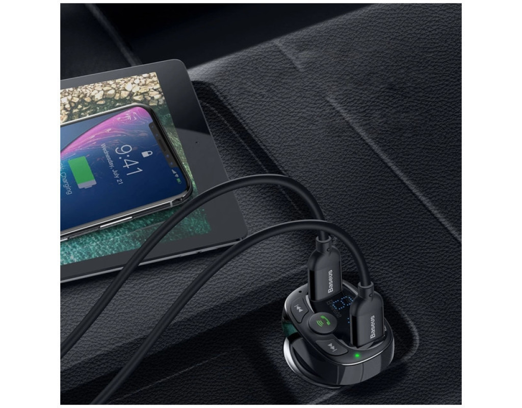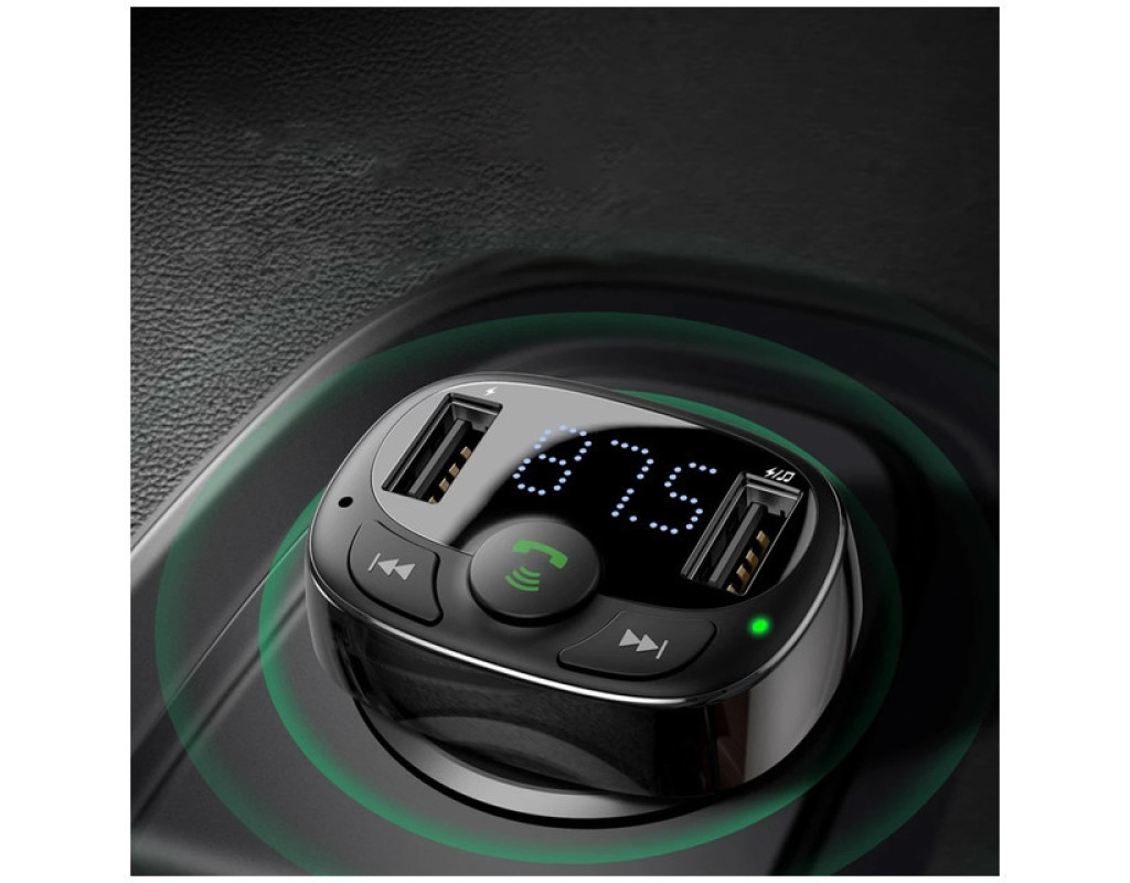 Baseus FM Launcher S-09 Standart Edition 2.4A 2USB - автомобільний зарядний пристрій з FM-передавачем, що дозволяє відповідати на дзвінки та відтворювати музику з вашого телефону, USB-накопичувача або карти пам'яті Micro SD на аудіосистему автомобіля. Підходить до всіх автомобілів Ця модель ЗУ є універсальною і її можна використовувати в будь-якому автомобілі: легковій машині, вантажівці, автобусі та т.д. Покращені конектори зберігають підключення навіть при різкому гальмуванні або рух нерівною дорогою. Поїздки з музикою Пристрій оснащений FM-трансмітером, який дозволяє відтворювати музику через аудіосистему автомобіля. Для цього потрібно виставити на пристрої та аудіосистемі однакову частоту. Підтримується відтворення зі смартфона, підключеного через Bluetooth, а також карток TF (MicroSD) та USB-носіїв з об'ємом пам'яті до 32 ГБ. Оснащений кнопками керування FM-частотою та відтворенням музики. Керування викликами Вбудований мікрофон та кнопка керування викликами дозволяють приймати та скидати дзвінки, повторно викликати останній номер та розмовляти, не відволікаючись від керування автомобілем. Заряджає 2 пристрої одночасно 2 USB роз'єми дозволять вам заряджати паралельно 2 гаджети з максимальною силою струму 2.4 А. Захисні властивості У зарядний пристрій вбудована інтелектуальна система захисту, яка розподіляє подачу живлення між вашими гаджетами, оберігаючи їх від перевантаження, перегріву та короткого замикання. Корпус із міцного матеріалу, стійкого до перегріву, ударів та зношування, забезпечує довгий термін служби. Основні характеристики: