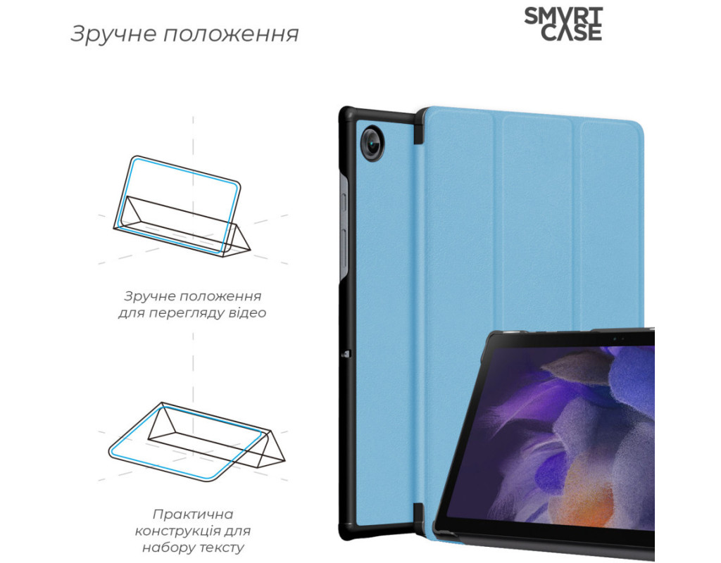 Тип - обкладинка, Сумісність з моделями - Samsung Galaxy Tab A9, Samsung Galaxy Tab A11, Спосіб кріплення - обкладинка, спосіб закриття - магніт, Матеріал - поліуретан, блакитний
