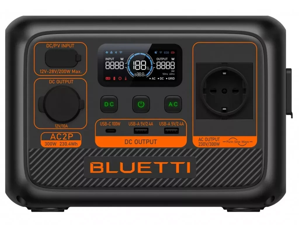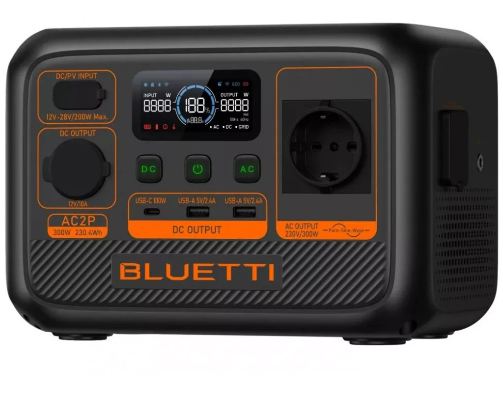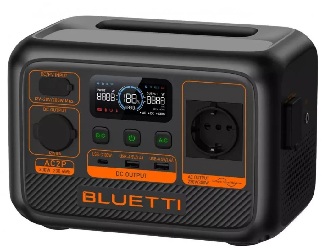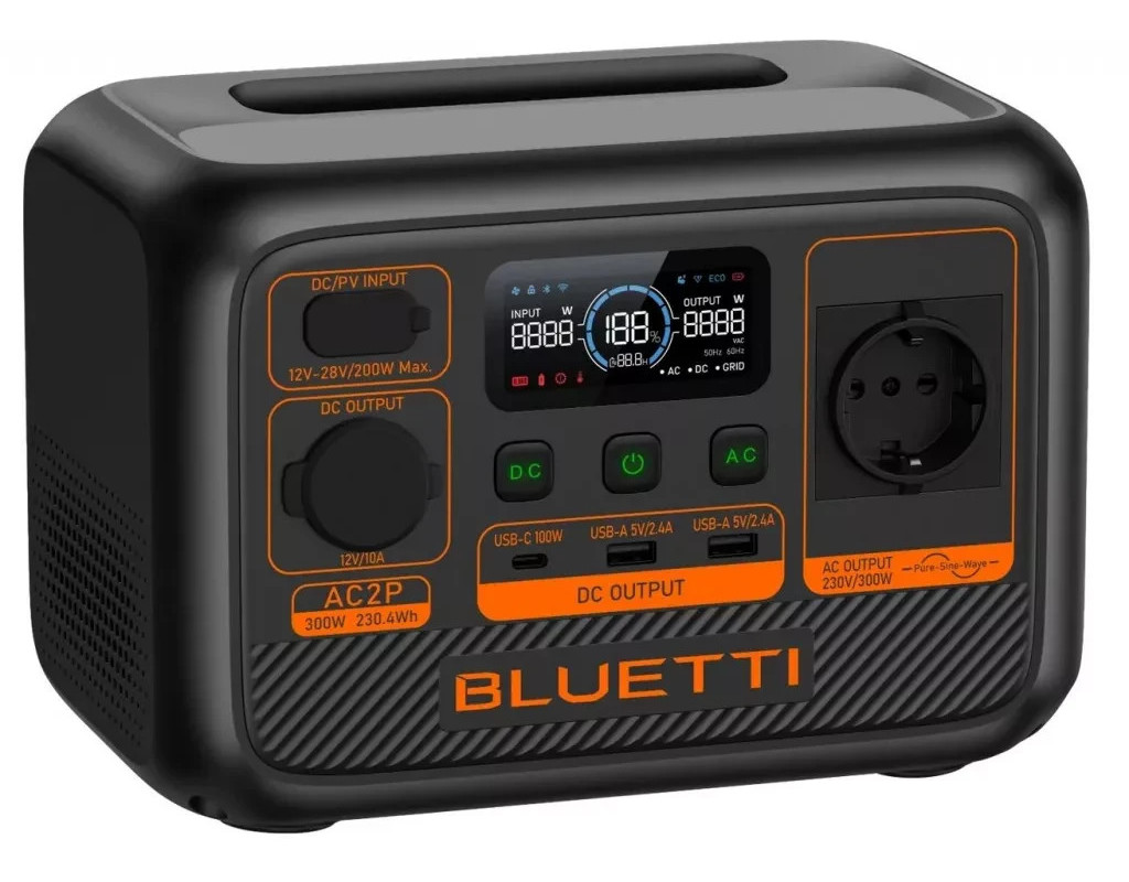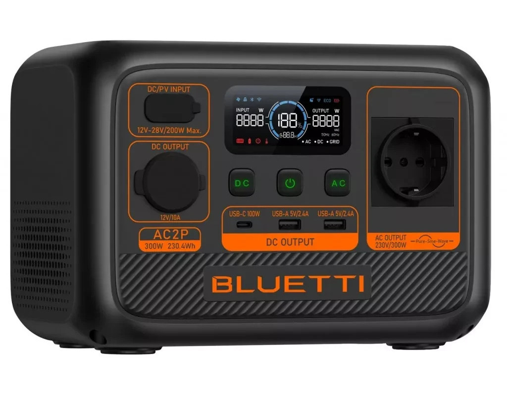 Легше, швидше і більше свободи Bluetti AC2P - це виключно легке та просте у використанні енергетичне сховище. З ємністю 230 Вт/год і вихідною потужністю 300 Вт воно здатне задовольнити більшість потреб в енергії для основних пристроїв. Зарядка до 80% ємності займає всього 45 хвилин, що робить його ідеальним супутником для активного відпочинку на природі, аварійної допомоги, подорожей автомобілем будинок на колесах та багатьох інших ситуацій. Дуже швидка зарядка, великий крок вперед Заряджання до 80% ємності займає всього 45 хвилин при використанні зарядки від мережі змінного струму, що означає, що AC2P готовий до відправлення в дорогу до моменту вашої упаковки. Також його можна заряджати за допомогою сонячних панелей протягом всього 1.5 години, забезпечуючи безліч доступної енергії протягом усього шляху. Гнучкість заряджання Ефективно заряджайте його на ваш розсуд - через розетку змінного струму, сонячні панелі, генератор або навіть зарядний пристрій для автомобіля, коли ви перебуваєте за кермом, не турбуючись про те, що батарея розрядиться, коли ви далеко від мережі. Надійна енергія, завжди під рукою Створений для щоденного використання протягом 10 років, AC2P використовує батарею LiFePO₄, щоб забезпечити оптимальну безпеку та більш тривалий термін служби. З інтелектуальною системою керування батареєю (BMS) можете бути впевнені, що вона зможе захистити цей енергетичний "звір" від потенційних ризиків. Безтурботне перенесення однією рукою AC2P має ультралегку вагу всього 3.6 кг / 7.9 фунтів, забезпечуючи неперевершену рухливість у вашій подорожі. Він також має ергономічний дизайн зі зручною ручкою для перенесення та покращеним інтелектуальним РК-екраном, роблячи його більш доступним до використання у будь-якому місці, куди б ви не вирушили. |