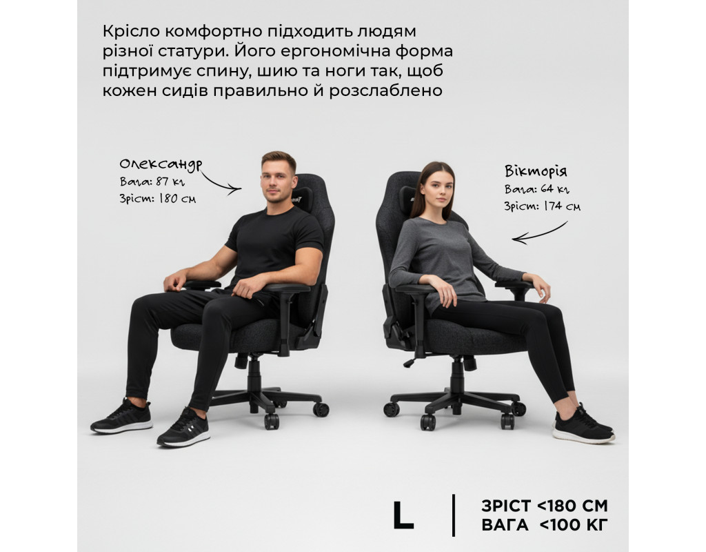 Серія Anda Seat Phantom 3 виготовлена з оновленого шкірозамінника, де ПВХ-шкіра вищого класу є найкращою від компанії, м’яка та гладка на дотик, що конкурує з текстурою натуральної шкіри. Змінені плоскі крила сидіння забезпечують простору та зручну основу сидіння, а ергономічна спинка вписується у природний вигин спини. Все це у поєднанні з преміальною оксамитовою подушкою розміру XL для попереку та головною подушкою забезпечує максимальну продуктивність користувачів. Ергономічний дизайн Ергономіка є вирішальним компонентом для забезпечення комфорту та запобігання потенційним проблемам зі здоров’ям у сидінні протягом тривалого часу. Ергономічне ігрове та офісне крісло Anda Seat Phantom 3 виводить ігри на новий рівень, покращуючи поставу, знімаючи навантаження зі спини, сідниць та всього тіла та забезпечуючи легкість під час тривалих та важких ігрових сесій чи роботи. Багатокольорова схема Anda Seat Phantom 3 доступний у чотирьох кольорах: елегантний чорний, хмарно-білий, кремово-рожевий та попелястий. Елегантний чорний, хмарно-білий і кремово-рожевий мають поверхню зі шкірозамінника, гладку на дотик, стійкість до подряпин та плям, шкіра ПВХ преміум-класу набагато міцніша, щоб зберегти форму. Попелястий - це неймовірно дихаюча лляна тканина, яка збереже вам прохолоду, сидячи на ній протягом тривалого часу. Функція реактивного хитання та кут нахилу до 160° Завдяки спинці «comfort tech», що дозволяє користувачеві нахилятися від 90 ° до 160 ° за допомогою спинки з повним механізмом, крісло можна адаптувати до будь-яких ваших уподобань. Більше ніяких турбот чи труднощів, коли ви спите або дивитеся улюблені шоу, просто насолоджуйтесь ергономічною підтримкою без напруги. Сядьте під будь-яким кутом та зафіксуйте сидіння в ідеальному положенні. Подушки з піни 60 кг/м для підтримки вашого тіла Ідеальне поєднання міцності та пружності, формована піна Re-Dense TM, застосовується для покращення щільності, збільшення довговічності та полегшення проблем «провисання» сидінь з часом. У поєднанні з розкішною подушкою для попереку XL та розміром M для голови підтримує нижню частину спини, утримуючи хребет у його природному положенні, розкішне ігрове крісло також запобігає сутулості під час гри або роботи протягом тривалого часу, заповнюючи простір між спиною та шиєю. |