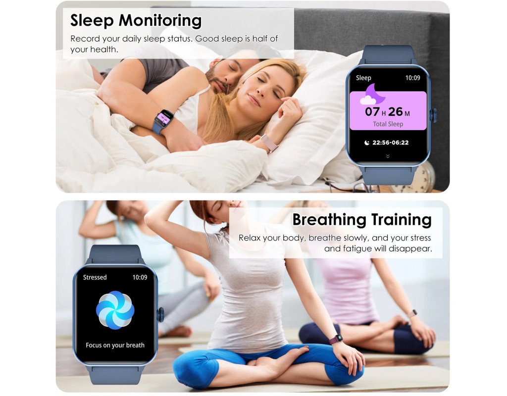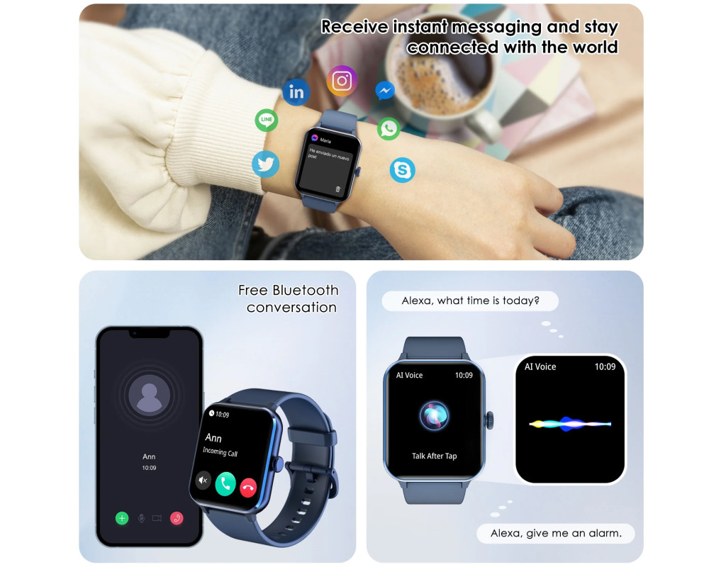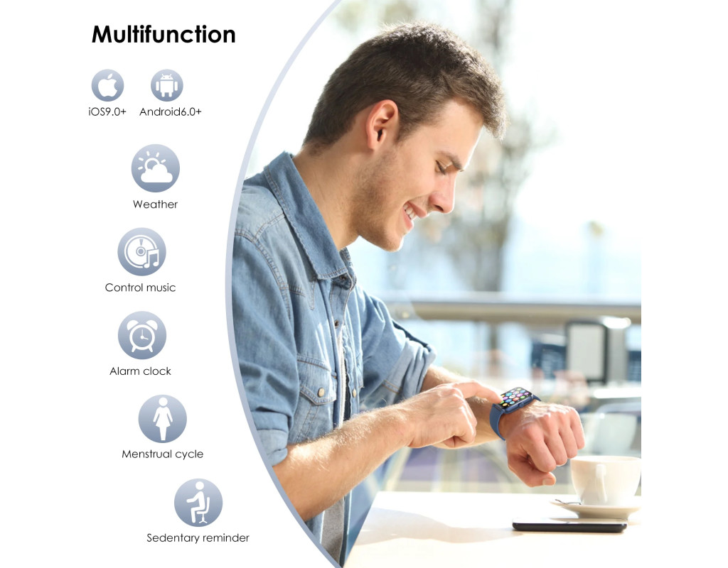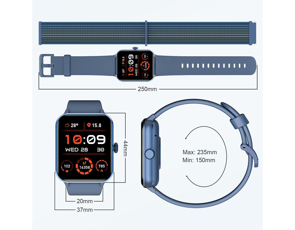 Особливості (Смартгодинники) Акселерометр, 25 спортивних режимів, мікрофон, вібромотор, керування камерою та музикою, регулювання яскравості, захист за стандартам IP68, магнітна зарядка, функція гучного зв'язку, контроль денної активності, трекінг сну, пульсометр, рівень кисню у кров