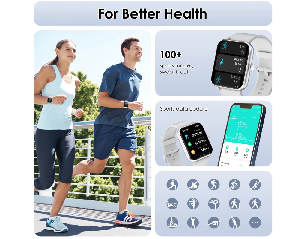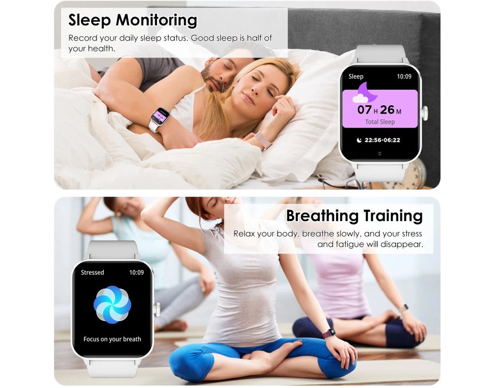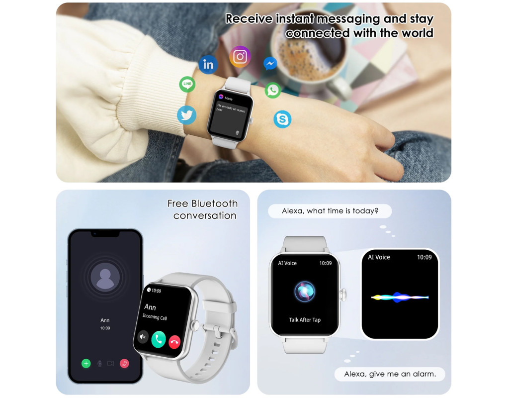 Акселерометр, 25 спортивних режимів, мікрофон, вібромотор, керування камерою та музикою, регулювання яскравості, захист за стандартам IP68, магнітна зарядка, функція гучного зв'язку, контроль денної активності, трекінг сну, пульсометр, рівень кисню у кров |