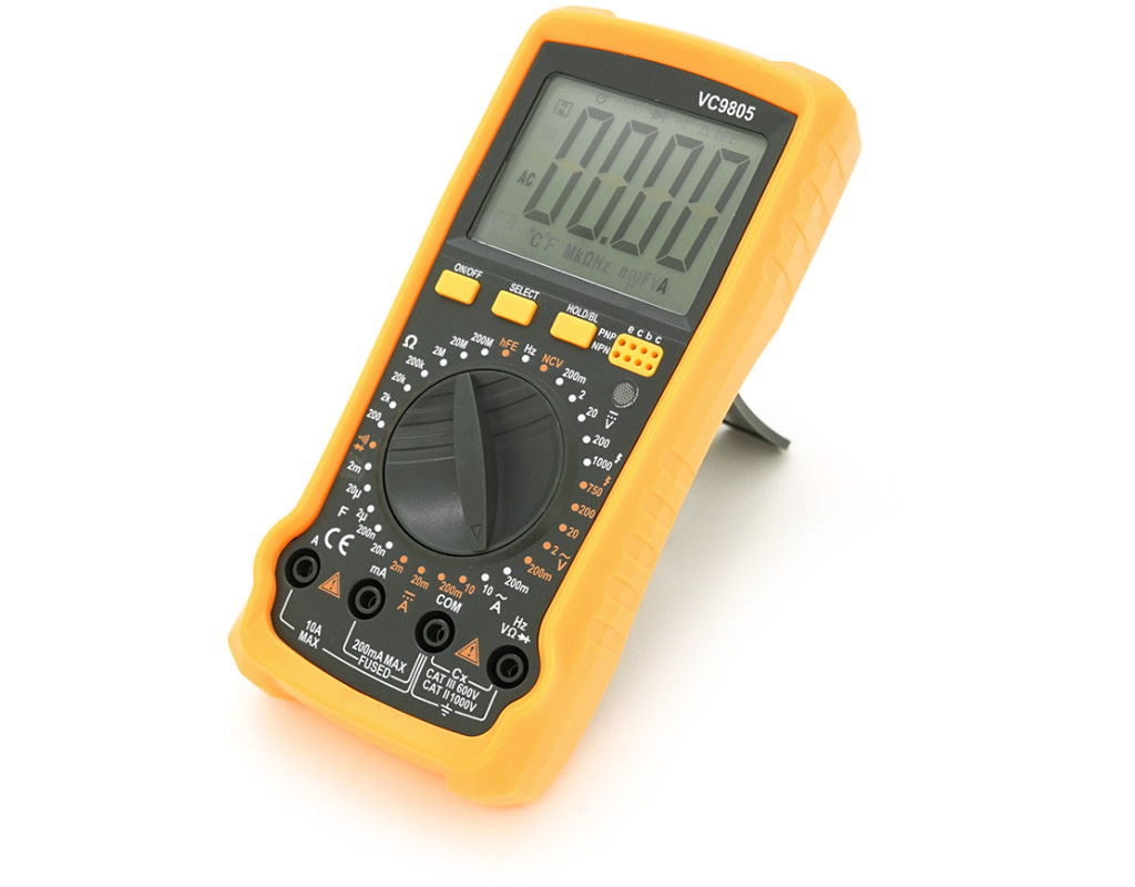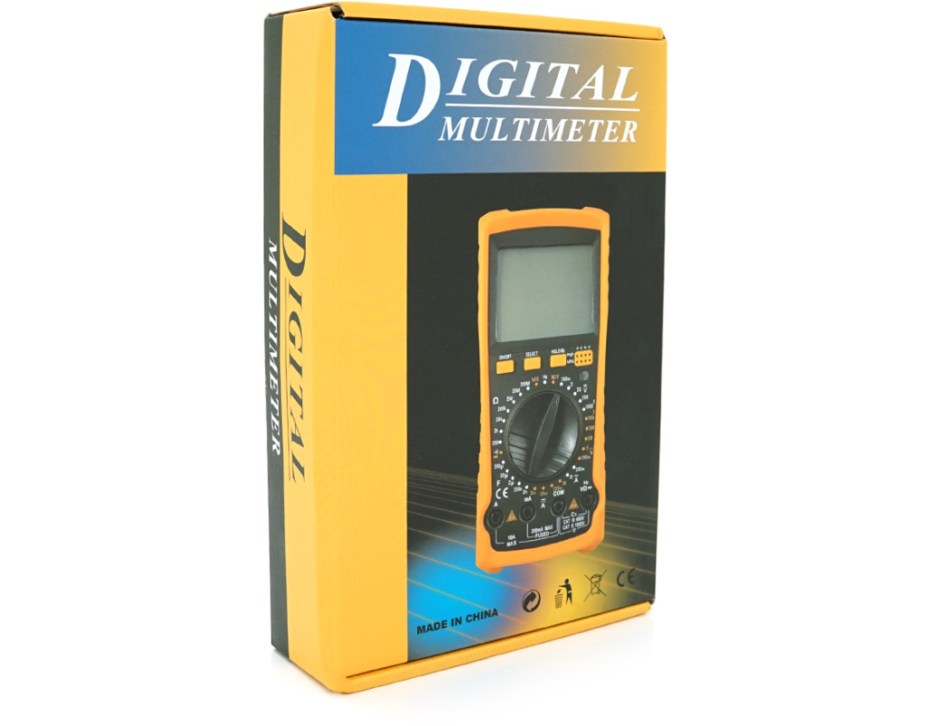 | Мультиметр VC-9805 – це універсальний цифровий прилад для вимірювання широкого спектру електричних та електронних параметрів. Він відмінно підходить як для професійного використання електриками, інженерами та техніками, так і для домашніх майстрів, які займаються ремонтом, діагностикою та монтажем електроустаткування. Пристрій зручний у роботі, відрізняється високою точністю, надійністю та простотою у використанні. Підходить для вимірювань постійної та змінної напруги, струму, опору, ємності, індуктивності, частоти та температури. Також прилад підтримує тестування діодів, транзисторів та логічних схем, звукове продзвонювання ланцюгів та оснащений корисними функціями, що полегшують роботу. Характеристики: • Вимірювані величини: напруга (V), струм (A), опір (R), ємність (C), індуктивність (L), частота (F), температура (T) • Постійна напруга: до 1000 В • Змінна напруга: до 700 В • Постійний та змінний струм: до 20 А • Опір: до 20 МОм • Місткість: до 200 мкФ • Індуктивність: до 20 Гн • Частота: до 10 МГц • Температура: до 1000 °C • Звуковий дзвінок ланцюга: є • Тест діодів: є • Тест транзисторів: є • Тест логічних схем: є • Функція утримання показань (HOLD): є • Підсвічування дисплея: є • Індикатор розряду батареї: є • Автовимикання: є • Розрядність дисплея: 1999 • Кількість роз`ємів: 4 • Робоча температура: від 0 до 40 ° C, вологість до 80% • Розміри: 190 х 89 х 28 мм • Вага: 0,32 кг Комплектація: • Мультиметр VC-9805 • Вимірювальні щупи • Батарея 9 типу «Крона» (можна бути встановлена) • Інструкція з експлуатації • Фірмова картонна упаковка Застосування: Мультиметр VC-9805 ідеальний для ремонту та діагностики електроніки, перевірки електромереж, вимірювань в автомобільній електроніці, налаштування та перевірки систем опалення та кондиціювання, а також у навчальних цілях. Це надійний інструмент для тих, хто цінує точність, функціональність та зручність у роботі. |
