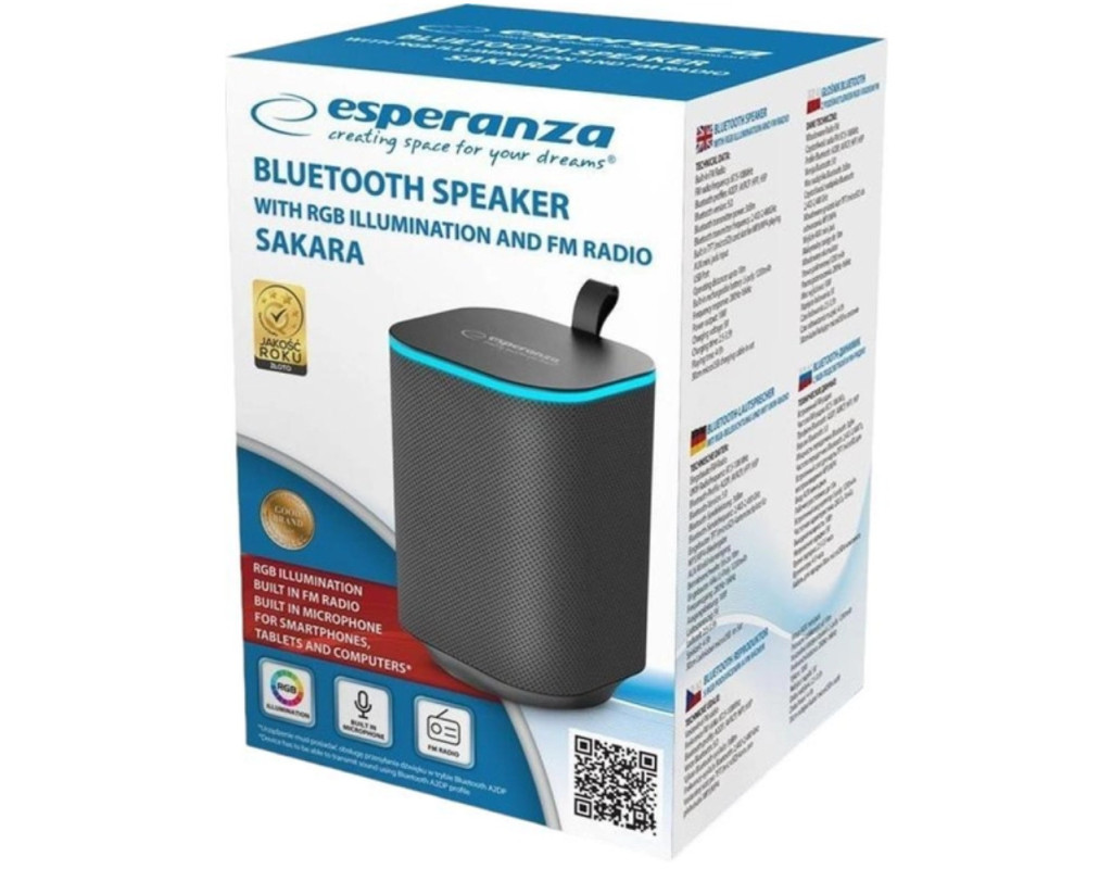 ESPERANZA RGB Illuminated FM Sakara (EP155) - легка портативна колонка Bluetooth зі світлодіодним підсвічуванням RGB. Ідеально підходить для прослуховування музики в машині, подорожі або вдома.