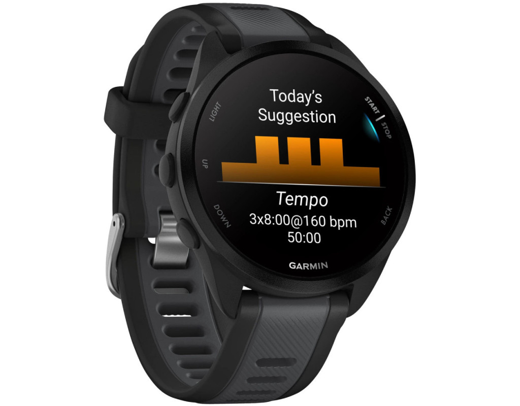 Простий у використанні біговий годинник Forerunner 165 з GPS надає основні функції, необхідні для того, щоб підняти вашу техніку бігу на новий рівень. Серед них GPS, вимірювання темпу, дистанції та частоти серцебиття на зап'ясті1. Щоденні рекомендовані тренуванняГодинник створює для вас персоналізовані тренування. Після кожної пробіжки вони адаптуються до вашої продуктивності та відновлення, а також майбутніх забігів, запланованих у календарі програми Garmin Connect™ для смартфона. Garmin CoachРозпочніть підготовку до забігу на 5 км, 10 км або півмарафону з безкоштовними інтерактивними тренувальними планами від одного з наших професійних тренерів, які допоможуть вам подолати новий виклик. Календар змаганьДодайте до календаря Garmin Connect майбутній забіг або велосипедний заїзд і щоденні тренувальні рекомендації будуть адаптовані до ваших змагань. Підготуйтеся до спортивного заходу за допомогою тренувальних порад, персоналізованих щоденних тренувань та прогнозів часу фінішу на основі даних про забіг, які ви вводите в Garmin Connect. Ранковий звітОдразу після вашого пробудження годинник надасть огляд вашого сну за минулу ніч1 та тренувальний план на день — разом з даними про стан варіабельності серцевого ритму та погоду. Ви можете налаштувати свій ранковий звіт таким чином, щоб він показував лише ту інформацію, яку ви хочете бачити. Тренувальний ефектАналізуючи цей показник ви зможете краще розуміти, як тренування впливають на вашу фізичну форму та яку користь ви отримуєте від пробіжок і тренувань. ВПЕРЕД, РЕЄСТРУЙТЕСЬ НА ПЕРЕГОНИПЛАНУВАННЯ. Тривалий час автономної роботиАкумулятор забезпечує 11 днів роботи в режимі розумного годинника та до 19 годин в режимі GPS. Довгий час автономної роботи дає змогу годиннику безперервно відстежувати ваші показники, а значить ви отримаєте повну картину свого здоров'я та тренувань. Час відновленняДізнайтесь, скільки часу вам потрібно на відновлення перед наступним інтенсивним тренуванням. Для розрахунків показник враховує такі фактори як стрес, повсякденна активність та сон. Моніторинг сну з оцінкою снуОтримайте уявлення про відновлення свого організму уві сні за допомогою моніторингу та комплексної оцінки сну. Переглядайте інформацію про різні фази сну та отримуйте персоналізовані рекомендації для його покращення1. Моніторинг енергії Body Battery™Відстежуйте енергетичні резерви у своєму організмі, щоб оптимально розподілити час між активністю та відновленням1. Ви навіть можете отримати детальну інформацію про те, як нічний та денний сон, активність та стрес впливають на вашу енергію. Навігація по трекахСтворюйте власні маршрути або знаходьте вже наявні маршрути в додатку Garmin Connect або на сторонніх платформах та синхронізуйте їх з вашим годинником. Прогноз часу перегонівЦя функція розраховує ваш ймовірний темп для дистанцій 5 км, 10 км, півмарафону та марафону. Визначення денного снуАвтоматично відстежуйте або реєструйте свій денний сон, щоб дізнатися, яку користь він приносить організму, а також ідеальний час і тривалість денного сну. Жіноче здоров'яЗаписуйте симптоми та початок менструального циклу або вагітності, щоб отримати поради для тренувань і харчування. Пульсометр на зап'ястіПостійне вимірювання частоти серцевих скорочень допомагає оцінити, наскільки інтенсивно ви працюєте на тренуваннях1. Біго