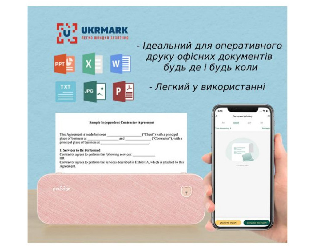 | Принтер чеків UKRMARK A40PK А4, Bluetooth, USB, рожевий (900798) - це портативний термопринтер, що забезпечує високу якість друку без чорнил. Завдяки Bluetooth для Android і USB для PC, він зручно підключається до різних пристроїв. Розроблений для друку PDF-файлів, контрактів, фото та іншого, A40PK підтримує ширину паперу від 56 до 210 мм, з регульованими затискачами. Його компактні розміри (265x80x45 мм) та вбудовані акумулятори на 2600 мАг дозволяють безперервно працювати до 3 годин. Це чудовий вибір для мобільної роботи в офісі чи навчанні, і навіть підходить для тату-салонів, завдяки друкуючій голівці з терміном служби понад 50 км. Принтер не потребує витратних матеріалів, що робить його економічним вибором. |