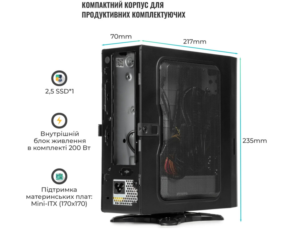| Корпус для ПК Qube QBMS112_FB2U3 створений для тих, хто цінує високу якість, стиль та функціональність у компактних рішеннях. Використовуючи передові технології та матеріали, цей корпус забезпечує надійну основу для вашої комп'ютерної системи, демонструючи сучасний дизайн у поєднанні з винятковою функціональністю. Цей корпус класу Компактні ідеально підходить для невеликих просторів, забезпечуючи універсальний спосіб установки з підтримкою Mini-ITX материнських плат. Типорозмір Minitower дозволяє зберегти місце, не втрачаючи продуктивності. Важливо відзначити, що корпус укомплектований блоком живлення потужністю 200 Вт, що розташований у нижній частині, що забезпечує ефективне керування енергоспоживанням та максимальну зручність в експлуатації. Особливістю даного корпусу є бічна панель із залізною сіткою, яка сприяє покращеному охолодженню компонентів. Корпус має особливе кріплення VESA на монітор, що підвищує його функціональні можливості, дозволяючи інтегрувати його в будь-який робочий простір. Хоч цей корпус компактний, він все ще вміщує один внутрішній відсік для накопичувача формату 2.5", а також оснащений одним слотом розширення. На передній панелі розташовані зручні зовнішні роз'єми 2 x USB 2.0 та 2 x Audio, що забезпечують легкий доступ до підключення периферійних пристроїв. Завдяки своєму якісному виготовленню та дизайну, корпус Qube QBMS112_FB2U3 забезпечує ефективну вентиляцію завдяки закономірній циркуляції повітря через вентиляційні отвори. Розмір корпусу становить 80 x 217 x 235 мм, що робить його ідеальним рішенням для компактних збірок, не жертвуючи при цьому стилем. Корпус пофарбований у чорний та темно-сірий кольори, що додає йому елегантності та універсальності в інтер'єрі. Завершуючи опис, варто зазначити, що корпус Qube QBMS112_FB2U3 пропонує баланс між естетикою, практичністю та функціональністю, роблячи його надійною основою для всіх ваших комп'ютерних потреб. Легкий доступ до компонентів, продумане керування кабелями та ефективне охолодження роблять цей корпус ідеальним вибором як для геймерів, так і для професіоналів, що працюють з вимогливими до ресурсів додатками. Вибираючи Qube QBMS112_FB2U3, ви інвестуєте у високу якість, витривалість та стиль. |