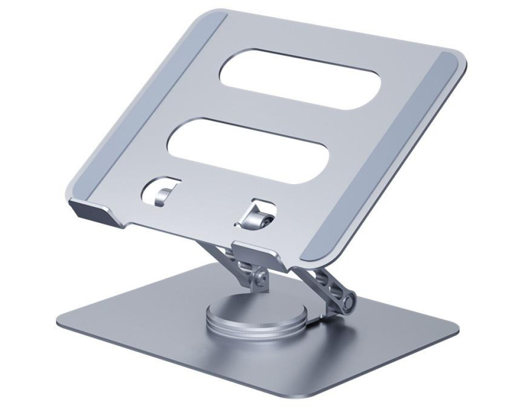 Регулювання висоти і кута нахилу: Два шарніра дозволяють виставити оптимальну висоту в діапазоні від 5 до 35 см і кут нахилу від 0° до 90° Обертання на 360°: Завдяки спеціальній конструкції ти зможеш обертати підставку навколо осі Функціональна конструкція: Антиковзні накладки в парі з прогумованими упорами захищають від подряпин і надійно фіксують ноутбук Якісні матеріали: Підставка виготовлена ??з авіаційного алюмінієвого сплаву, завдяки чому відрізняється великим запасом міцності і малою вагою Стильний дизайн: Аксесуар з легкістю впишеться в будь-який інтер’єр і стане ідеальним доповненням до твого ноутбука Пасивне охолодження: Покращує забір повітря за рахунок отворів в підставці Турбота про поставу: підставка забезпечує комфортний кут огляду |
