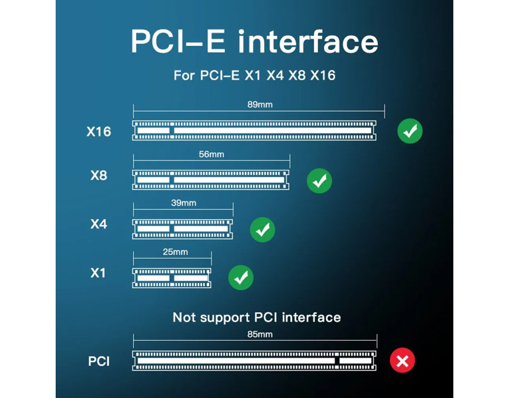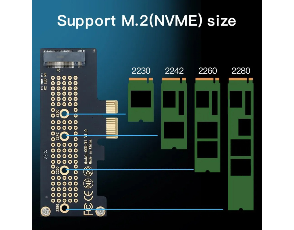 За допомогою цього адаптера M.2 NVMe SSD PCI-E 4.0 X1 можна додати NVME SSD на материнську плату без слота M.2. Завдяки каналу PCI-E 4.0 X1 швидкість буде збільшена до 16 Гбіт/с, 1600+ МБ/с у довільному режимі читання та 1600+ МБ/с у записі (макс.), покращена продуктивність комп’ютера, зворотна сумісність із PCIe 1.0 2.0 3. Без обмеження ємності: підтримка ємності 2T/4T M.2 PCIe (NVMe/AHCI) SSD, підтримка розміру 2230/2242/2260/2280 Не потрібний драйвер для Win10 Win11, plug and play, підтримує всі m.2 NVMe SSD Цей продукт є слотом PCIE X4 3.0 або PCIE X8 3.0 або PCIE X16 3.0, вставленим у материнську плату, тобто в слот відеокарти материнської плати, не вставляйте слот PCI неправильно, слот може спалити материнську плату, плату адаптера та жорсткий диск! Windows 7 не може розпізнати жорсткий диск NVME! Сумісність з ОС: Plug and play у Windows 11/10/8/Linux/Mac OS. (Примітка: Windows 7 не має рідного драйвера NVMe, тому не може підтримувати M.2 PCIe SSD) |