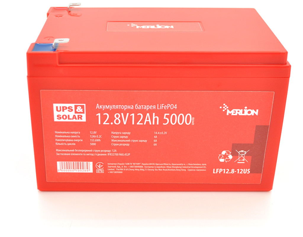 | Літій-залізо-фосфатний акумулятор Merlion LiFePO4 12.8V 12AH - це надійне та довговічне джерело живлення, яке ідеально підходить для використання в різних додатках, включаючи резервне живлення, електроніку та системи зберігання енергії. Цей акумулятор має видатну продуктивність і тривалий термін служби. Характеристики: • Номінальна напруга: 12.8V • Номінальна ємність: 12Ah (C250) • Енергія: 153.6Wh • Внутрішній опір: 100мОм • Цикл життя: <5000 циклів @1C 100% DOD • Саморозряд (за місяці): <3% Характеристики заряду: • Ефективність заряду: 100% @0.2C, 96-99% @1C • Напруга заряду: 14.6±0.2V • Режим заряду: 0.20 до 14.6V, потім 14.6V, струм заряду 0.02C (CC / CV) • Струм заряду: 15A • Максимальний струм заряду: 15A • Завершення заряду: 14.8V+0.2V Характеристики розряду: • Безперервний струм розряду: 15A • Максимальний імпульсний струм: 45A (<38) • Завершення розряду: 10V Температурні характеристики: • Температура заряду: 0°C до 45°C (32°F до 113°F) @60 / 25% відносної вологості • Температура розряду: -20°C до 80°C (-4°F до 140°F) @50±25% відносної вологості • Температура зберігання: 0°C до 40°C (32°F до 104°F) @60±25% відносної вологості Інші характеристики: • Тип осередків та метод підключення: 3.2V 6AH-4S2P • Корпус: Пластиковий корпус з ABS • Габарити: 151x98x95 мм • Вага: 2.5 кг (Допуск ± 5,0%) • Термінал: T2 • Протокол (за бажанням): Ні • BMS: 4S 15A Застосування: Літій-залізо-фосфатний акумулятор Merlion LiFePO4 12.8V 12AH ідеально підходить для наступних програм: 1. Резервне живлення: Забезпечує надійне джерело живлення для систем аварійного резервного живлення (UPS), забезпечуючи безперебійне електроживлення у разі збоїв у мережі. 2. Електроніка: підходить для використання в електронних пристроях, таких як бездротові системи зв`язку, мобільні станції та інші портативні пристрої. 3. Системи зберігання енергії: Може використовуватись для створення систем зберігання сонячної енергії, домашніх акумуляторних систем та електромобілів. Літій-залізо-фосфатний акумулятор Merlion LiFePO4 12.8V 12AH забезпечує стабільне та довгострокове живлення, що робить його чудовим вибором для різноманітних потреб в енергії. |