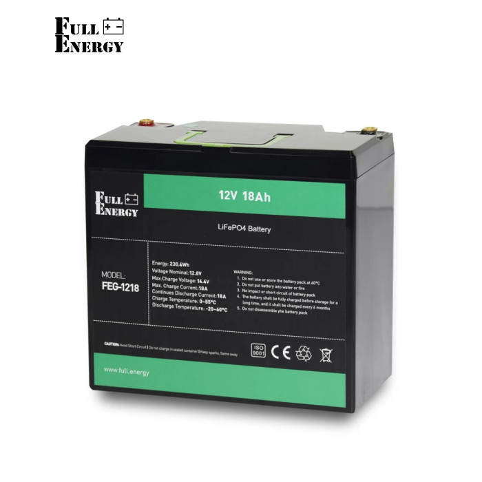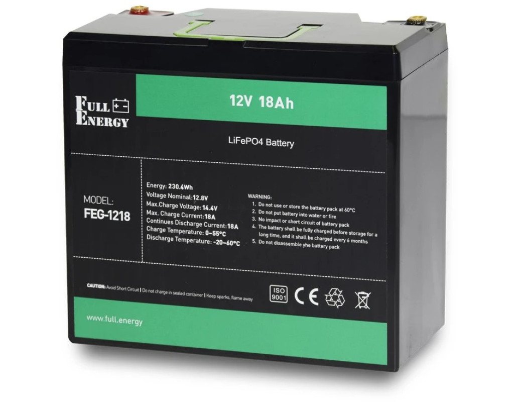 | Літій-залізо-фосфатний акумулятор FEG-1218 виконаний у герметичному корпусі та виготовлений за технологією LiFePO4. У технології використовується мінерал сімейства олівін – він зустрічається у природному середовищі, не токсичний, термостійкий.
