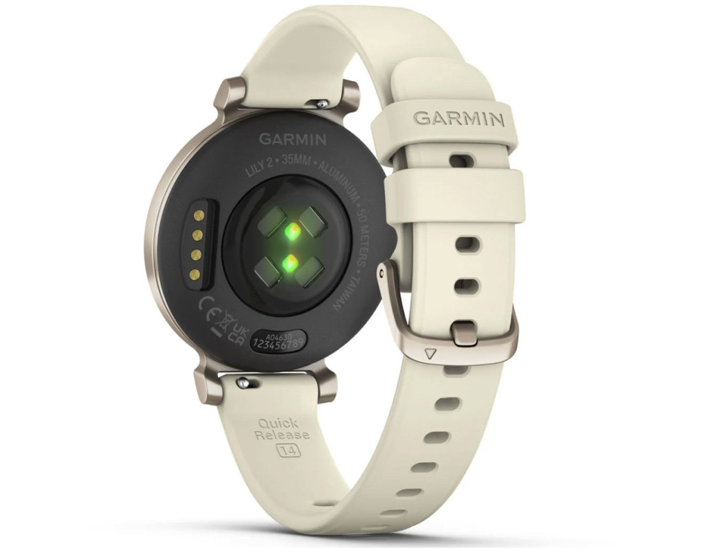 Цей витончений маленький смартгодинник, що ідеально пасуватиме до кожного вашого образу, оснащений металевим корпусом та красивим візерунковим циферблатом. Крім того, швидким дотиком або поворотом зап'ястя на годиннику Lily 2 розкривається інтелектуальний, особливо яскравий сенсорний дисплей. Обирайте для свого гаджета різні варіанти 14-міліметрових швидкознімних ремінців з нейлону, силікону або італійської шкіри. Комбінуйте та ремінців, щоб створити власний неповторний дизайн свого годинника Lily. Моніторинг енергії Body Battery™Слідкуйте за рівнем енергії в організмі протягом дня, щоб розуміти, коли ваше тіло сповнене енергії та готове до активності, а коли виснажене і потребує підзарядки за допомогою спокійного сну. Оцінка снуПереглядаючи оцінку якості сну ви можете краще розуміти, як покращити свій сон. Відстежуйте різні фази сну, а також частоту серцевих скорочень1, стрес, Pulse Ox2 і дихання. Відстеження активності та спортивні програмиLily 2 фіксує кількість пройдених кроків, спалених калорій, хвилин інтенсивності та багато інших метрик вашої активності протягом дня 1. Також годинник містить понад 15 мотивуючих спортивних додатків для занять йогою, пілатесом, кардіо, силовими тренуваннями, медитацією і навіть танцями. Безконтактні платежі Garmin PayПроходьте черги на касах швидше, сплачуйте за проїзд у сумісних транспортних системах за допомогою безконтактних платежів та прив’язаної картки одного з банків-учасників (функція доступна тільки на смартгодинниках Lily 2 Classic). Підключення до GPSПід’єднайте годинник до GPS сумісного смартфона, щоб отримувати точні дані активності під час прогулянок, поїздок на велосипеді та пробіжок. НЕПЕРЕВЕРШЕНИЙ СТИЛЬ ТА ФУНКЦІЇ ДЛЯ ПОВСЯКДЕННОГО ЖИТТЯ. СПОСТЕРЕЖЕННЯ ЗА ЗДОРОВ’ЯМ. Пульсометр на зап'ястіЦя функція постійно вимірює ваш пульс і може видавати сповіщення, якщо ваш пульс став занизьким або зависоким1. Ранковий звітОдразу після вашого пробудження годинник надає ранковий звіт, який можна налаштовувати, з оглядом вашого сну, щоденного календаря, погоди тощо. Спостереження за жіночим здоров'ямВідстежуйте менструальний цикл і вагітність, а також отримуйте поради щодо фізичних вправ і харчування. Відстеження стресуДізнайтеся, яким був ваш день: спокійним, врівноваженим чи напруженим. МедитаціяВаш наручний гаджет допоможе зменшити стрес та тривогу за допомогою медитаційних практик. Усвідомлене диханняКоли ви намагаєтесь розслабитись або зосередитись, запустіть відповідну дихальну вправу, стежте за стресом та частотою дихання, щоб краще розуміти, як дихання впливає на ваше здоров’я. ПульсоксиметрГодинник визначає рівень насичення крові киснем вдень та під час сну2. Водний балансЗаписуйте щоденне споживання рідини як нагадування про необхідність підтримувати водний баланс. Частота диханняПодивіться, скільки вдихів ви робите протягом дня, під час сну, дихальних вправ та вправ з йоги. ФІТНЕС. Танцювальна активністьВідстежуйте різні танцювальні фітнес-заняття, серед яких Zumba®, Afrobeat, Bollywood, EDM, хіп-хоп та інші. Нагадування про рухОтримуйте нагадування про необхідність рухатися з різними варіантами рухів для виконання. Хвилини інтенсивних занятьВідстежуйте хвилини помірної та інтенсивної активності. Спортивний вікОцініть, у наскільки хорошій фізичній формі ви перебуваєте порівняно з в
