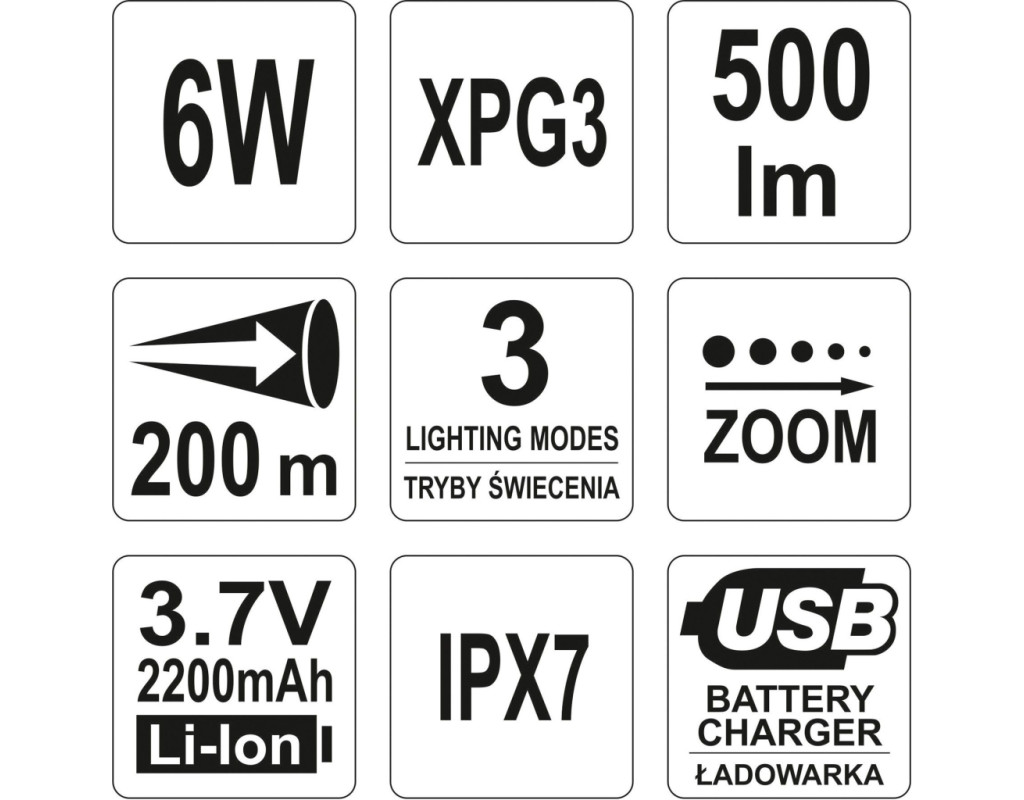 | Ліхтар Yato YT-08568 — це ідеальне поєднання сучасних технологій та надійності в компактному форм-факторі. Його зручний дизайн і вражаюча потужність освітлення роблять його незамінним інструментом як для щоденного використання, так і для екстремальних умов. Одна з головних переваг цього ручного ліхтаря — це світлодіод XPG3 CREE потужністю 6 Вт, який забезпечує інтенсивний світловий потік до 500 люменів. Це дозволяє створити яскраве освітлення в темряві на відстань до 200 метрів, що робить цей ліхтар ідеальним для походів, кемпінгу або використання в умовах обмеженої видимості. Ліхтар Yato працює на літій-іонному акумуляторі 18650, який ємністю 2200 мА·год гарантує безперервну роботу при повному заряді до 4 годин. До комплекту входить зарядний пристрій USB, що забезпечує зручність підзарядки в будь-яких умовах. Високий клас захисту IPX7 дозволяє ліхтарику залишатися функціональним навіть при тимчасовому зануренні у воду на глибину до 1 метра. Він також володіє пиловідштовхувальними властивостями, що гарантує роботу в будь-яких погодних умовах. Міцний алюмінієвий корпус, виконаний з анодованого сплаву 6063 T6, захищає ліхтар від ударів і пошкоджень. Додаткове захисне покриття з гуми надає комфорт у використанні та запобігає ковзанню, а зручний ремінець на руку не дасть вам втратити ліхтар під час активного використання. Yato YT-08568 пропонує три режими яскравості — 100%, 20% та SOS, які можна вибрати залежно від потреб. Функція ZOOM дозволяє регулювати ширину світлового променя, забезпечуючи масштабування від сфокусованого точкового світу до широкого розсіяного. Цей чорний ліхтар довжиною 120 мм і вагою лише 110 г є надзвичайно легким і компактним, що дозволяє з легкістю переносити його в кишені або рюкзаку. Сучасний дизайн, висока потужність та надійність роблять ліхтар Yato YT-08568 ідеальним вибором для тих, хто цінує якість та функціональність. Він стане вашим надійним помічником у будь-яких умовах, забезпечуючи яскраве освітлення та впевненість навіть у найтемнішій ночі. |