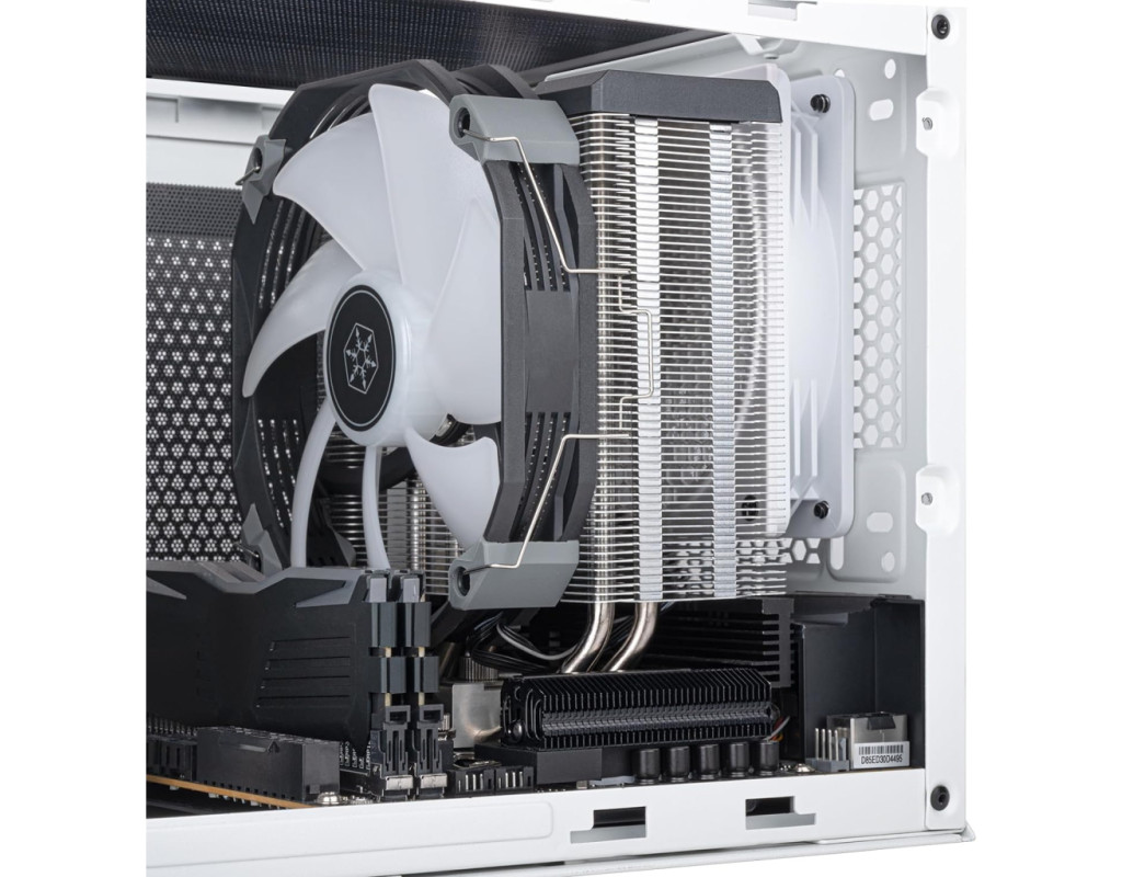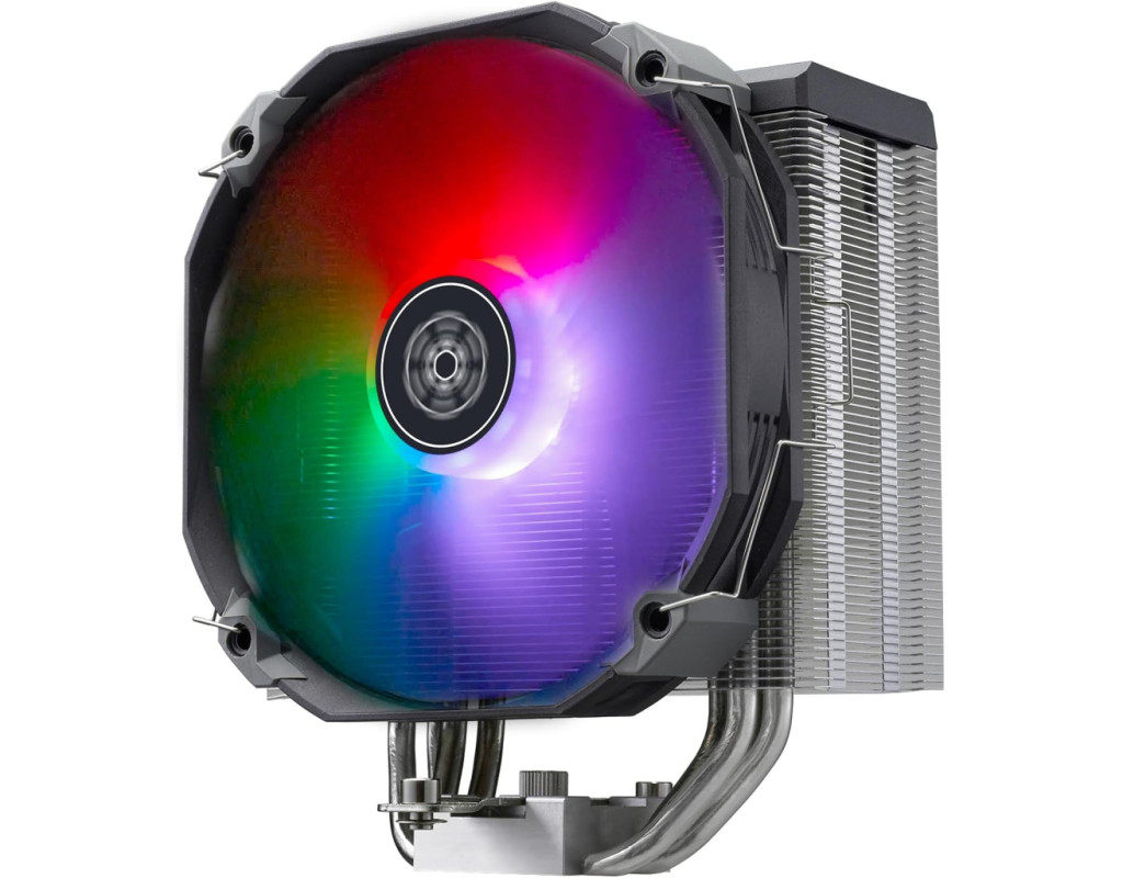| Процесорний кулер SilverStone Argon V140 ARGB Процесорний кулер SilverStone Argon ARV140-ARGB (TDP 180W) – відрізняється високим показником ефективності охолодження, продуманою конструкцією, класичним дизайном, високою продуктивністю та демократичною ціною. Крильчатка 140мм PWM вентилятора зі своєрідними формою лопатями. Це сприяє активному потоку повітря за досить тихої роботи. ARGB вентилятор, що світиться, доповнює дизайн пристрою. |