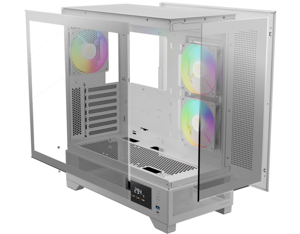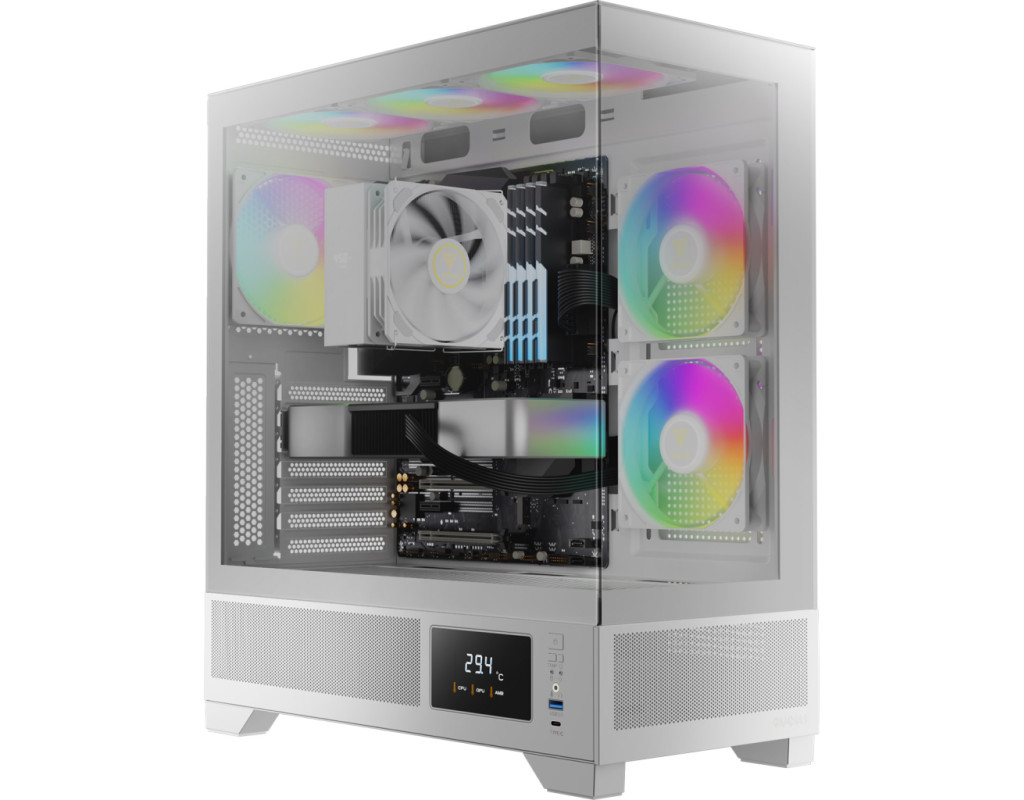 | Корпус для ПК Gamdias ATLAS M1 WH (4712960139572) - це втілення інновацій та естетики для геймерів, які прагнуть створити унікальну систему. Цей білий Miditower корпус не лише ефективно поєднує передові технології вентиляції, а й захоплює очі вишуканим дизайном із прозорими скляними панелями, що підкреслюють елегантність та стиль вашої збірки. Корпус розроблено для підтримки материнських плат стандарту ATX, Mini-ITX та Micro-ATX, що робить його надзвичайно універсальним для будь-яких конфігурацій. Незважаючи на відсутність вбудованого блоку живлення, Gamdias ATLAS M1 WH дозволяє оптимально розмістити блок живлення внизу, покращуючи організацію кабелів та додаючи стабільність до системи. Крім того, він підтримує встановлення довгих відеокарт до 410 мм, що стане в нагоді ентузіастам з іграми. Однією з важливих переваг є потужна вентиляція, забезпечена трьома вбудованими вентиляторами ARGB PWM. Вони не лише сприяють оптимальному повітряного потоку, але й дарують корпусу вражаючий вигляд завдяки ефектному ARGB освітленню. Залежно від вашої потреби, ви можете додатково встановити три вентилятори по 120 мм або два по 140 мм зверху, покращуючи систему охолодження. Крім того, пиловий фільтр зверху і знизу корпусу гарантує чистоту всередині та тривалу службу пристроїв. Геймери, що цінують стабільність системи, знайдуть задоволення у можливості підтримувати рідинні системи охолодження з максимальними розмірами радіаторів 360/280 мм зверху, 240 мм з боку та 120 мм ззаду. Така систему охолодження гарантує, що ви зможете насолоджуватися вимогливими іграми без нагрівання пристрою. Прозора передня панель та вікно на бічній панелі дозволяють милуватися творчістю збірки, тоді як безшовні загартовані панелі забезпечують механізм швидкого зняття та заміни компонентів. Завдяки вишуканому вигляду корпус Gamdias ATLAS M1 WH підкреслює не лише функціональні, але й візуальні характеристики. На фронтальній панелі розташовані сучасні зовнішні роз'єми: один аудіо вихід, один USB 3.0 і USB 3.2 Type-C для забезпечення швидкого та зручного підключення периферії. Також Gamdias ATLAS M1 WH має контрольний дисплей, що дозволяє користувачам відстежувати стан системи в режимі реального часу за допомогою програмного забезпечення ZEUS CAST. Ця функція додає можливість швидкого доступу до найактуальнішої інформації про працездатність складових і зміни режиму CPU/GPU/AMB/OFF безпосередньо через порти I/O. Легкий і міцний, цей корпус вагою 7,6 кг і розмірами 210 х 465 х 420 мм поєднує стильність та продуктивність. Gamdias ATLAS M1 WH (4712960139572) - це оптимальний вибір для тих, хто шукає баланс між естетикою і функціональністю в своїй ігровій системі. |