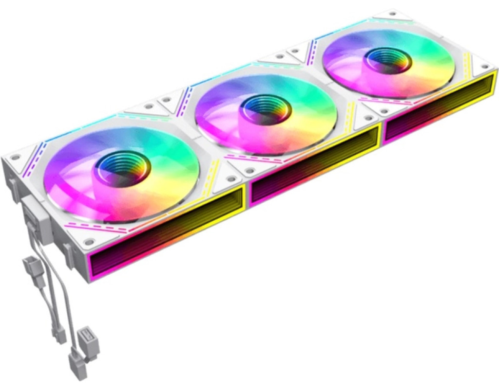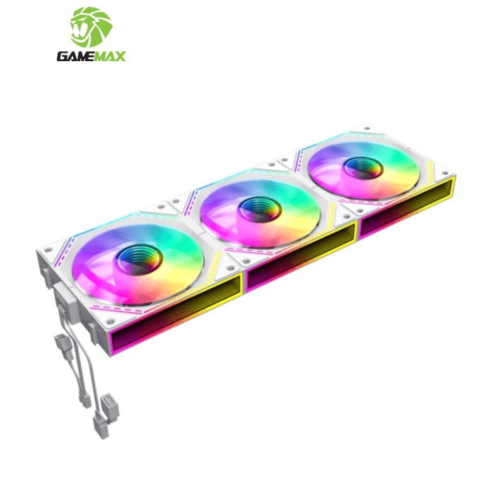• Три повнофункціональні вентилятори 120 мм ARGB PWM. Інтелектуальна температура контролює швидкість на рівні 800~1600±10% обертів за хвилину, підключаючись до 4-контактного роз’єму PWM на материнській платі, тому швидкість вентилятора автоматично контролюється та забезпечує тиху роботу вентиляторів.