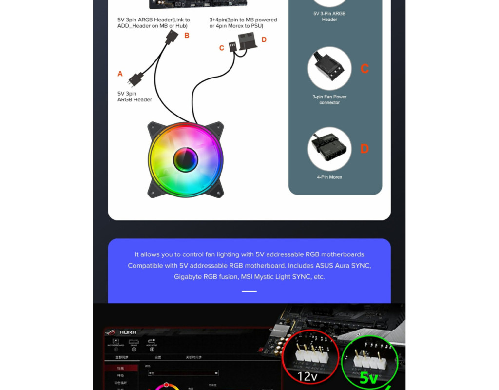 Абсолютно новий для 2022 FN-12Rainbow-Q-Infinity Full White, ARGB 12cm Fan, це зовнішнє чотирикільцеве освітлення разом із нескінченним світловим ефектом у центрі вентилятора та безшумним вентилятором із гідравлічним підшипником Забезпечує тиху роботу під час використання з рівнем шуму прибл. 22 дБ (A), він оснащений адресним 3-контактним роз’ємом 5 В, а вентилятор живиться від звичайного 3-контактного роз’єму. |