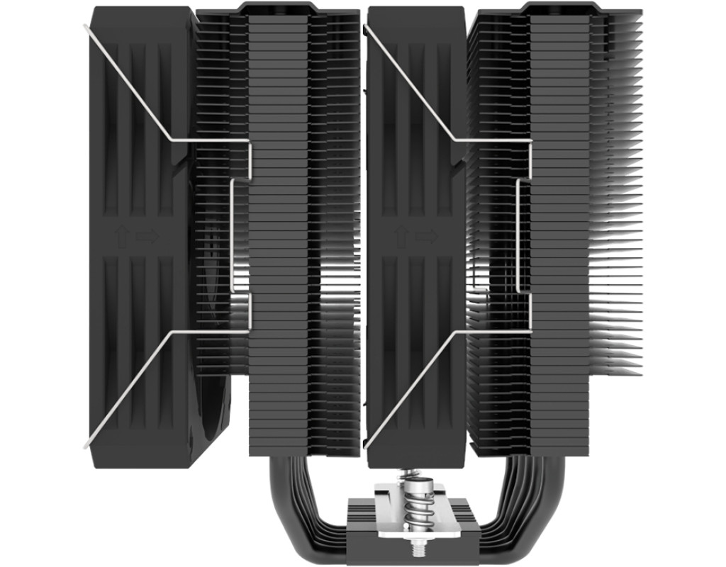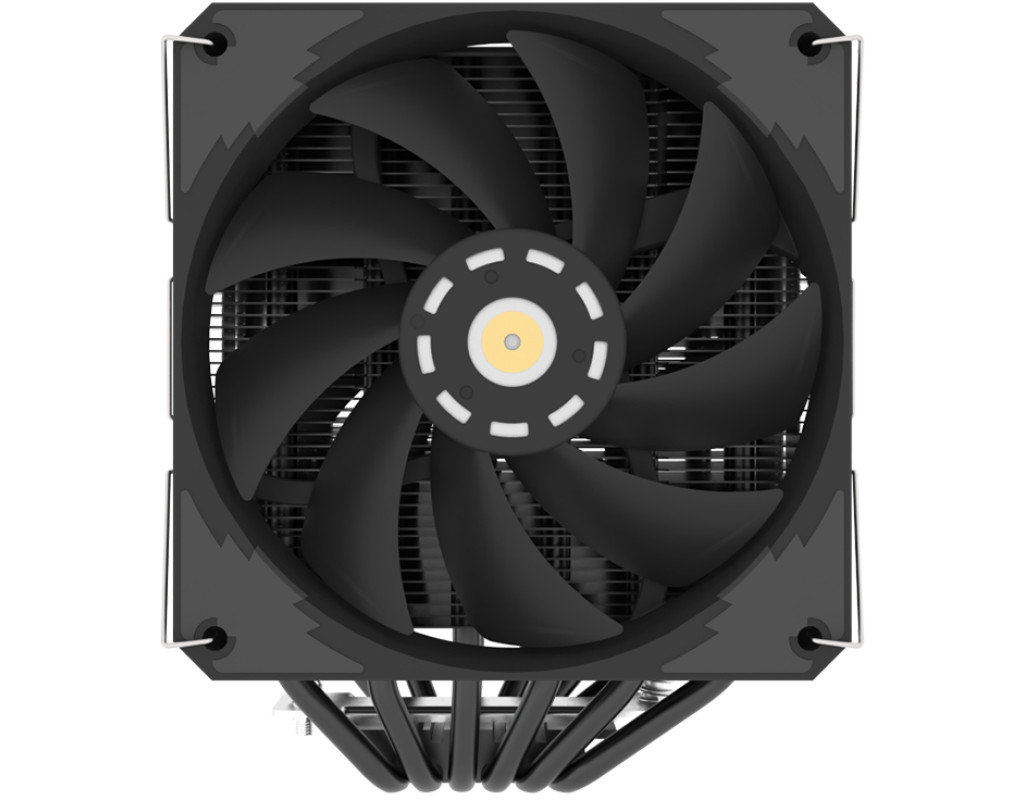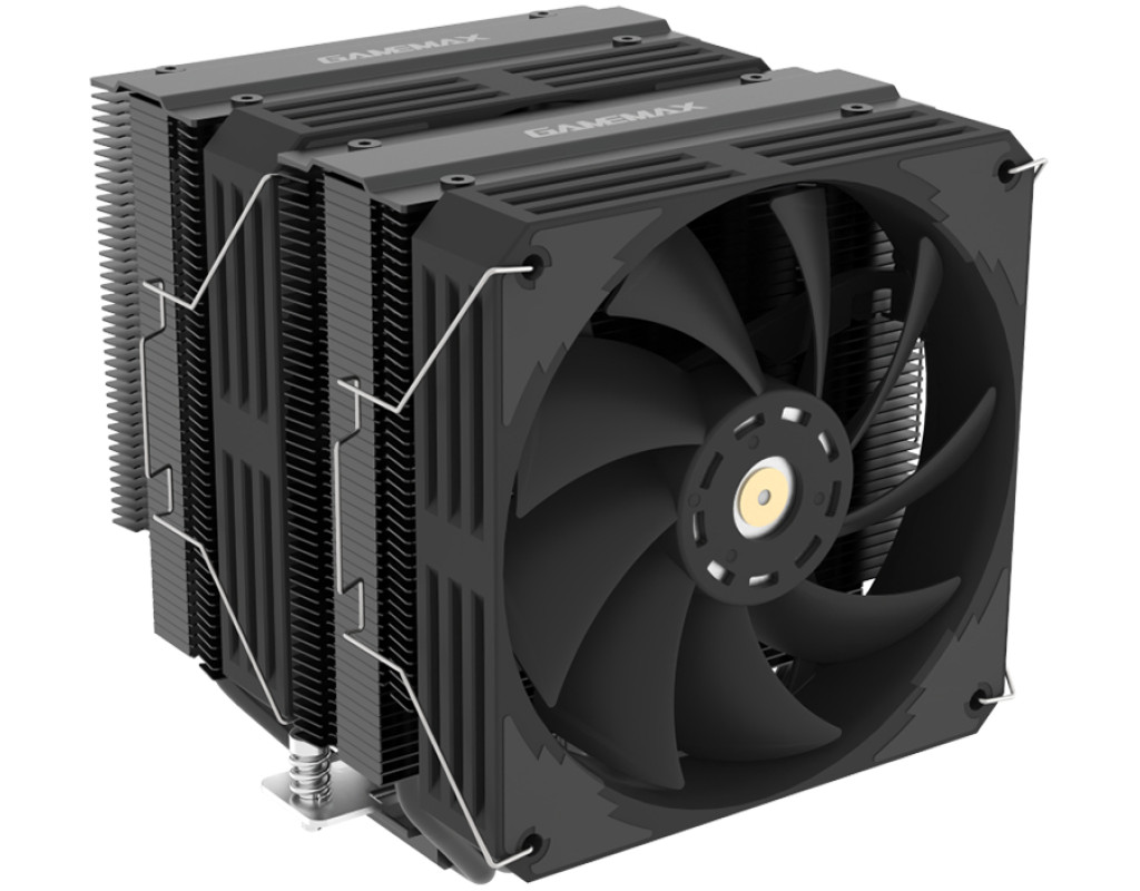 Для процесорів - INTEL, AMD, сокет - AM4, AM5, 1150, 1151, 1155, 1156, 1200, 1700, матеріал радіатора - алюміній, діаметр вентиляторів - 120 мм, Максимальна частота обертів - 2500 об/хв, рівень шуму - 38.6 dB, роз'єми живлення - 4-pin, Підсвічування - немає, 6 теплових труб