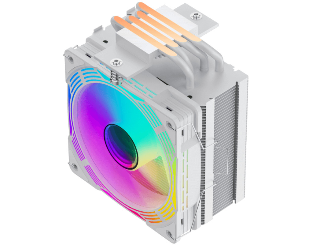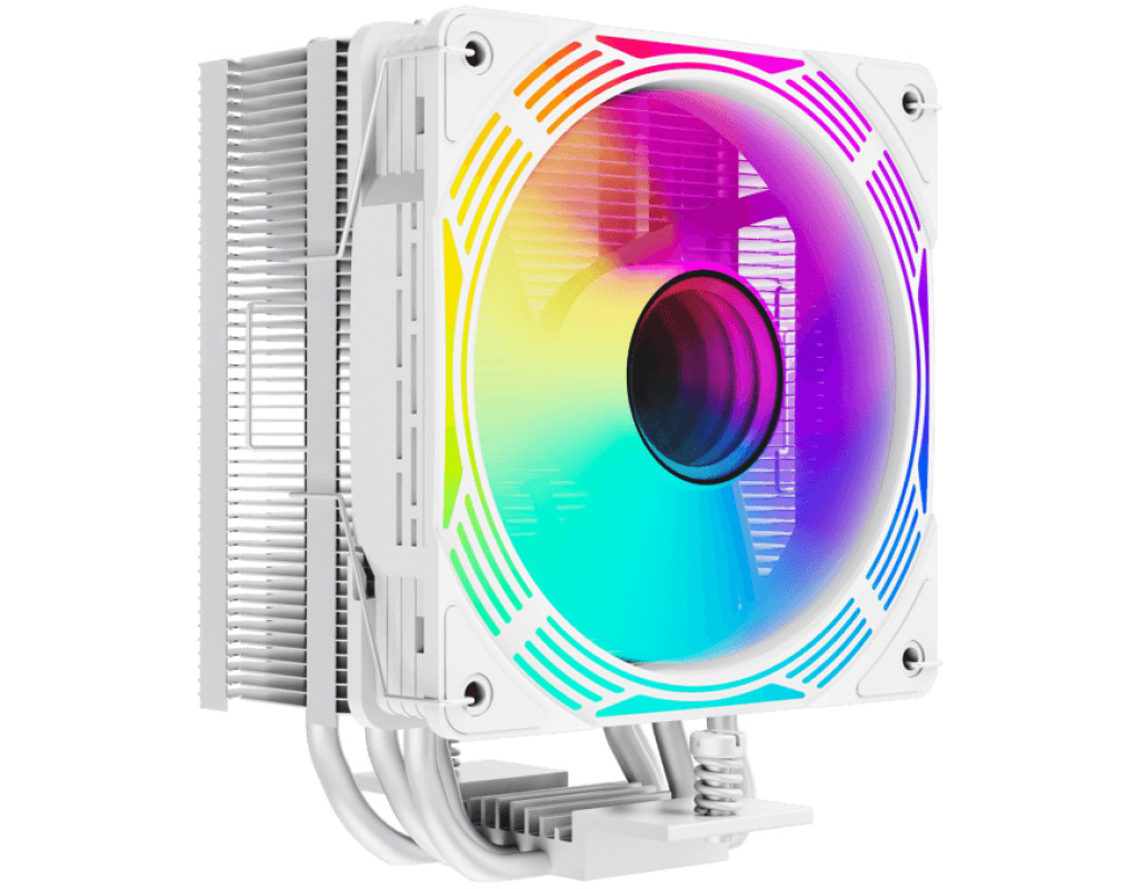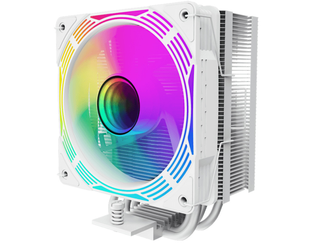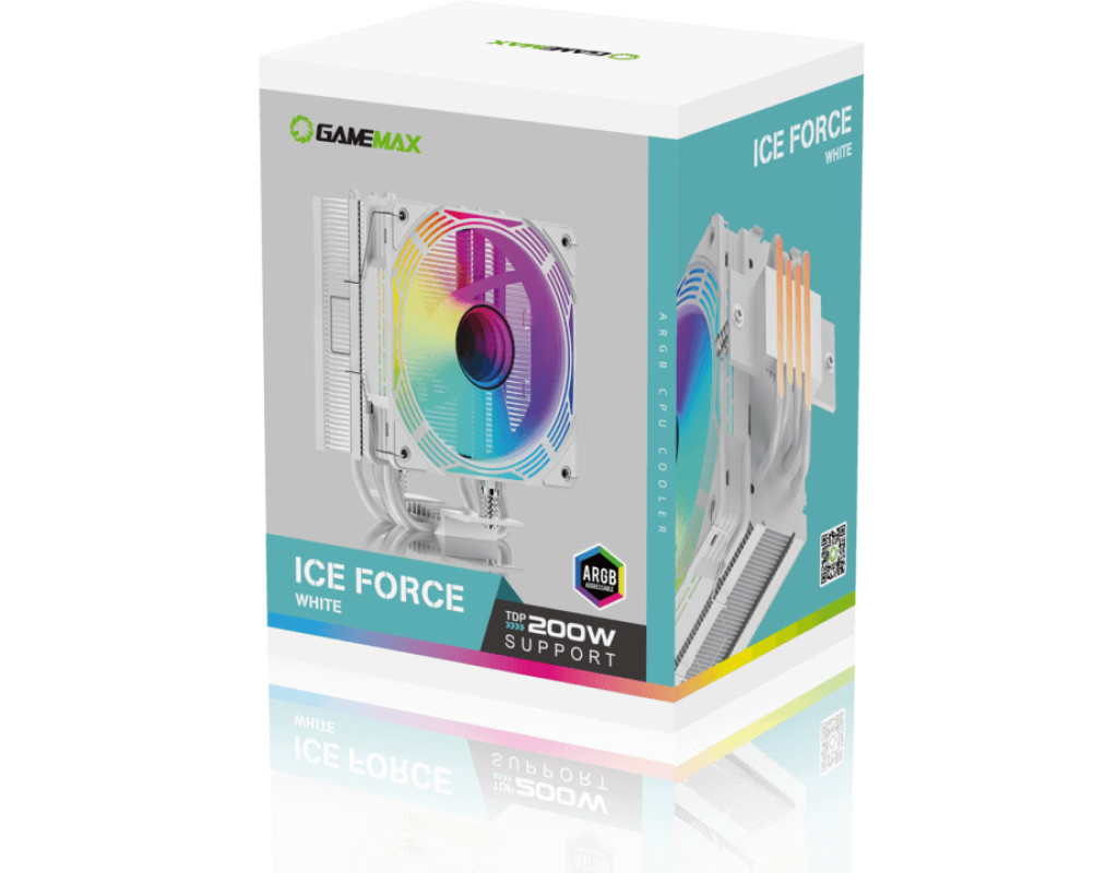 Кулер для процесора GAMEMAX Ice Force WH, пофарбований у білий колір, має чотири теплові трубки. Він підтримує процесори Intel Gen12, 13 та останню модель AMD, оснащений світловими ефектами ARGB. Максимальна теплова потужність процесора, з якою повинна справлятися система охолодження - 200W. |