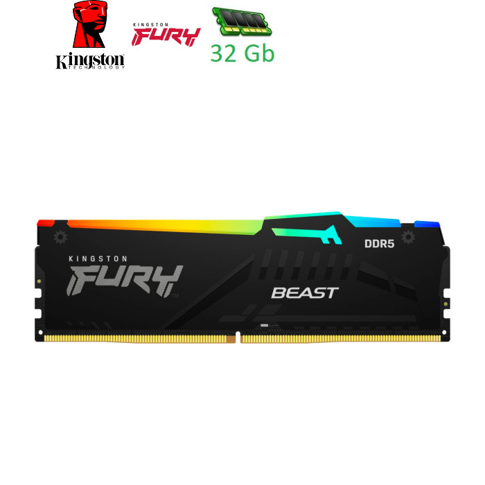 Kingston Fury Beast DDR5 RGB не тільки дає змогу розганяти пам’ять на ігрових платформах нового покоління завдяки передовим технологіям, а й має стильний вигляд. Скористайтеся перевагами надшвидкої пам’яті DDR5 із подвоєною кількістю банків і подвоєною довжиною пакету. Яскраве RGB-підсвітлення, яке можна налаштувати за допомогою програмного забезпечення Kingston Fury CTRL з запатентованою технологією Infrared Sync Technology, і тепловідвід у новому дизайні дають змогу залишатися в центрі уваги в грі та поза нею. Крім того, Kingston Fury Beast DDR5 RGB підтримує функцію автоматичного налаштування конфігурації (Plug N Play), яка забезпечує автоматичний розгін пам’яті до 4800 МТ/с, і нову спеціфікацію Intel XMP 3.0, що містить два додаткових профілі, які можна налаштовувати самостійно. Усі модулі пам’яті проходять повне тестування на робочій швидкості та забезпечені пожиттєвою гарантією. Покращене RGB-підсвітлення та новий дизайн тепловідводуДодайте стилю ігровому процесу: скористайтеся можливістю налаштування плавних і приголомшливих переливів RGB-підсвітлення за допомогою програмного забезпечення Kingston Fury CTRL або програмних засобів керування виробника материнської плати. Запатентована технологія Kingston Fury Infrared Sync TechnologyСинхронізація яскравих ефектів RGB-підсвітлення завдяки Infrared Sync Technology (запатентована розробка компанії Kingston). Підтримка специфікацій AMD EXPO 1.0, Intel XMP 3.0 і відповідний сертифікатПоліпшені попередньо оптимізовані таймінги, швидкість і напруга для розгону та збереження нових профілів, що налаштовуються користувачем, із використанням програмованої мікросхеми PMIC. Модуль підтримує розширені профілі розгону AMD EXPO 1.0. Схвалено провідними виробниками материнських платПеревірене та надійне рішення для вашої материнської плати, яке дає змогу впевнено займатись улюбленою справою. Ще більше стабільності для розгонуECC-контроль даних на чіпі (ODECC) захищає цілісність даних, та дає змогу не турбуватися про продуктивність системи, коли ви виходите за межі можливого! Plug N Play зі швидкістю 4800 МТ/сKingston Fury Beast DDR5 RGB автоматично розганяється до найвищої заявленої швидкості, допустимої BIOS системи. |