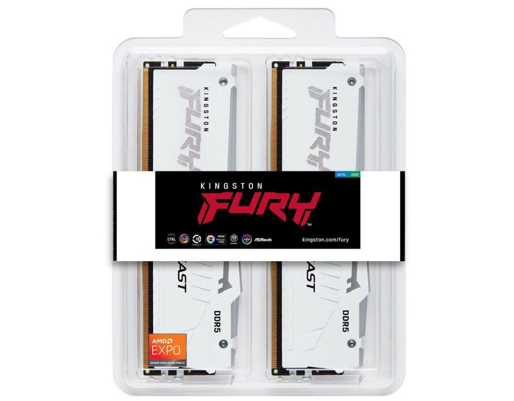 Модуль пам'яті для комп'ютера DDR5 64GB (2x32GB) 6400 MHz Beast White RGB EXPO Kingston Fury (ex.HyperX) (KF564C32BWEAK2-64)