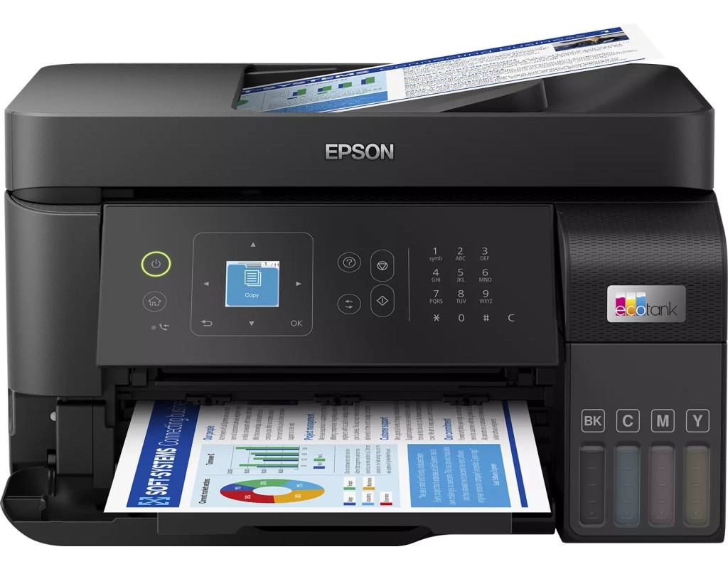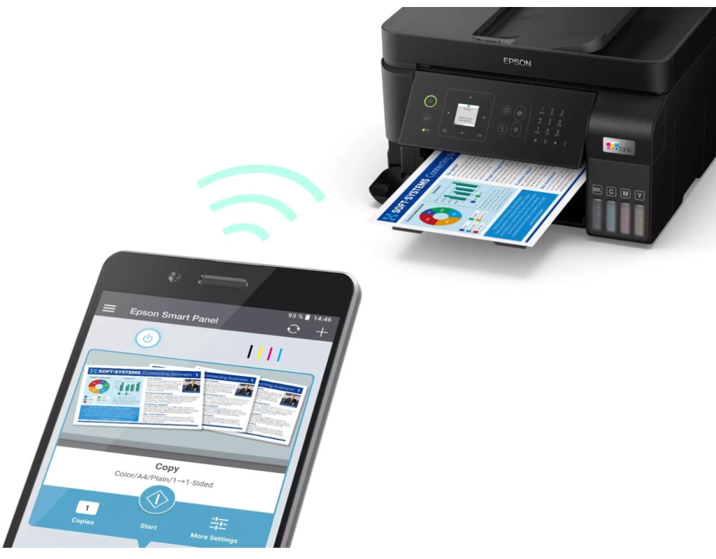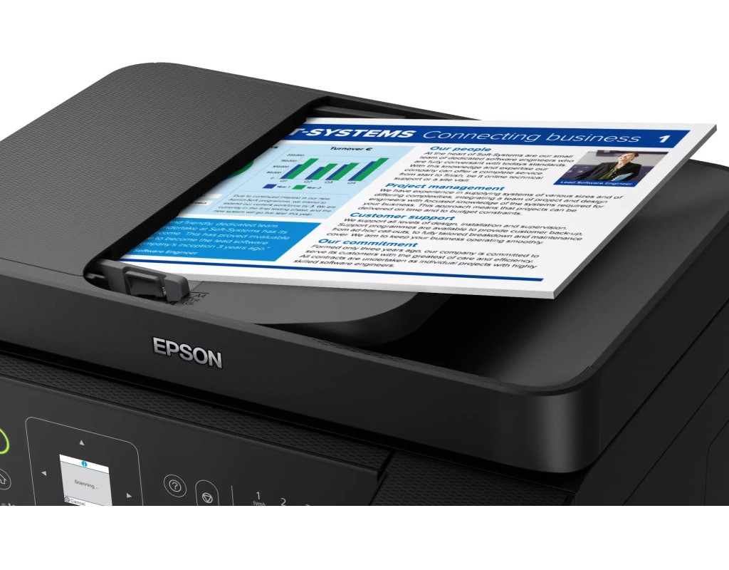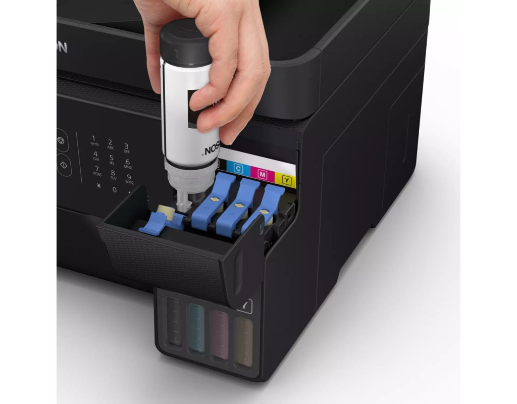 | Попрощайтеся з картриджамиEcoTank забезпечує легкий друк удома: резервуари для чорнил підвищеної місткості створені для простого заправляння, а конструкція контейнерів із замками дає змогу доливати чорнила лише потрібних кольорів.Суцільна економіяЦей економний принтер дає змогу скоротити витрати на друк на 90% і постачається із запасом чорнил на 3 роки в комплекті. Один комплект контейнерів забезпечує друк до 4 300 чорно-білих і 7 300 кольорових сторінок, що дорівнює запасу чорнила для 66 картриджів!Програма Epson Smart PanelЦей застосунок дає змогу керувати принтером з вашого смартфона. Ви можете друкувати, копіювати й сканувати документи та фотографії, налаштовувати, відстежувати й виявляти несправності свого принтера, використовуючи лише телефон або планшет.Різноманітність функційЗавдяки кольоровому РК-екрану діагоналлю 3,7 см, пристрою автоматичної подачі паперу на 30 сторінок і факсу, задньому лотку для паперу на 100 аркушів і швидкості друку до 15 сторінок на хвилину ви можете з легкістю прискорити виконання різних завдань.Сучасна гнучкістьЗавдяки компактному дизайну, базі Apple AirPrint і можливості підключення через Wi-Fi, Wi-Fi Direct та Ethernet, принтер можна легко інтегрувати в наявне домашнє або офісне середовище та друкувати з мобільних пристроїв, планшетів і ноутбуків. Технологія без нагрівання Завдяки технології PrecisionCore Heat-Free ви можете значно скоротити споживання електроенергії та потребу в запасних частинах. Друкувальна голівка попередньо встановлена, тому ви з легкістю налаштуєте принтер. |
