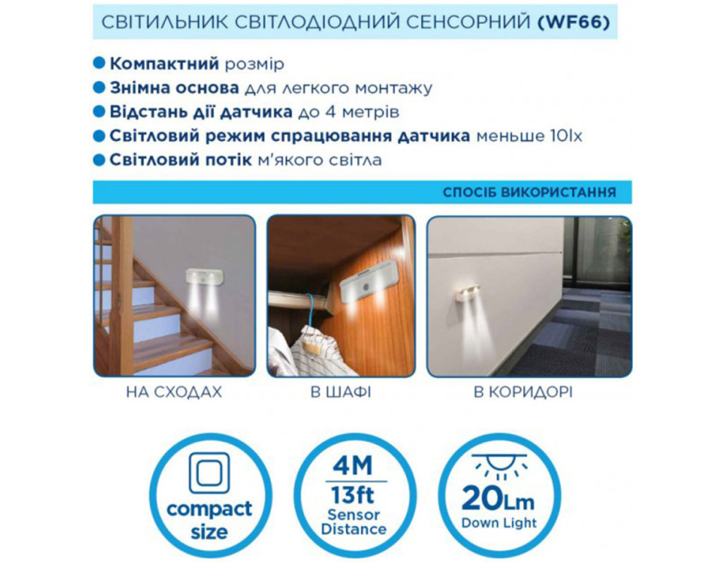 | Ліхтар Westinghouse LED сенсорний WF66 є втіленням сучасних технологій та надійності від одного з флагманів електротехнічної індустрії США — компанії Westinghouse. Цей багатофункціональний настільний та кемпінговий світильник ідеально поєднує в собі економічну ефективність та зручність використання. Один з ключових акцентів — це інтелектуальна сенсорна система, яка робить ліхтар незамінним у темній порі доби. Оснащений датчиком руху, ліхтар автоматично вмикається при виявленні руху на відстані до 4 метрів, що дозволяє ефективно освітлювати сходи, шафи, ванні кімнати, підвали та інші темні куточки вашого дому. Як тільки рух в радіусі 120º перестає фіксуватися, пристрій автоматично вимикається через 35 секунд, зберігаючи енергоресурси. Розумне освітлення забезпечується за допомогою двох потужних SMD2835 LED-ламп, які генерують м’яке біле світло з яскравістю 20 люмен і колірною температурою 6000К. Це створює приємну атмосферу, яка не лише захищає ваші очі, але й підкреслює сучасний стиль інтер’єру. Компактний і легкий — всього 120 мм завдовжки і вагою 60 г, ліхтар виготовлений з міцного ABS пластику, який забезпечує стійкість до зовнішніх впливів. Крім того, конструкція передбачає легке кріплення за допомогою клейкої стрічки або гвинтів, що входять у комплект. Це означає, що ви можете встановити його в будь-якому необхідному місці без зайвих зусиль. Джерело живлення — три батарейки AAA, які також входять у комплект, забезпечують тривалу роботу пристрою, що робить його економічно виправданим варіантом для щоденного використання. Завдяки такому рішенням ви завжди можете розраховувати на достатній запас енергії у будь-який момент. Ліхтар Westinghouse LED сенсорний WF66 — це надійний помічник для комфортного освітлення усіх життєво важливих зон вашого дому. Його стильний білий корпус та продуманий дизайн гармонійно впишуться в інтер'єр, забезпечуючи якість світла на високому рівні та зручність у використанні. Довіртеся досвіду та інноваціям Westinghouse, щоб створити дійсно комфортну освітлювальну атмосферу у вашій оселі. |
