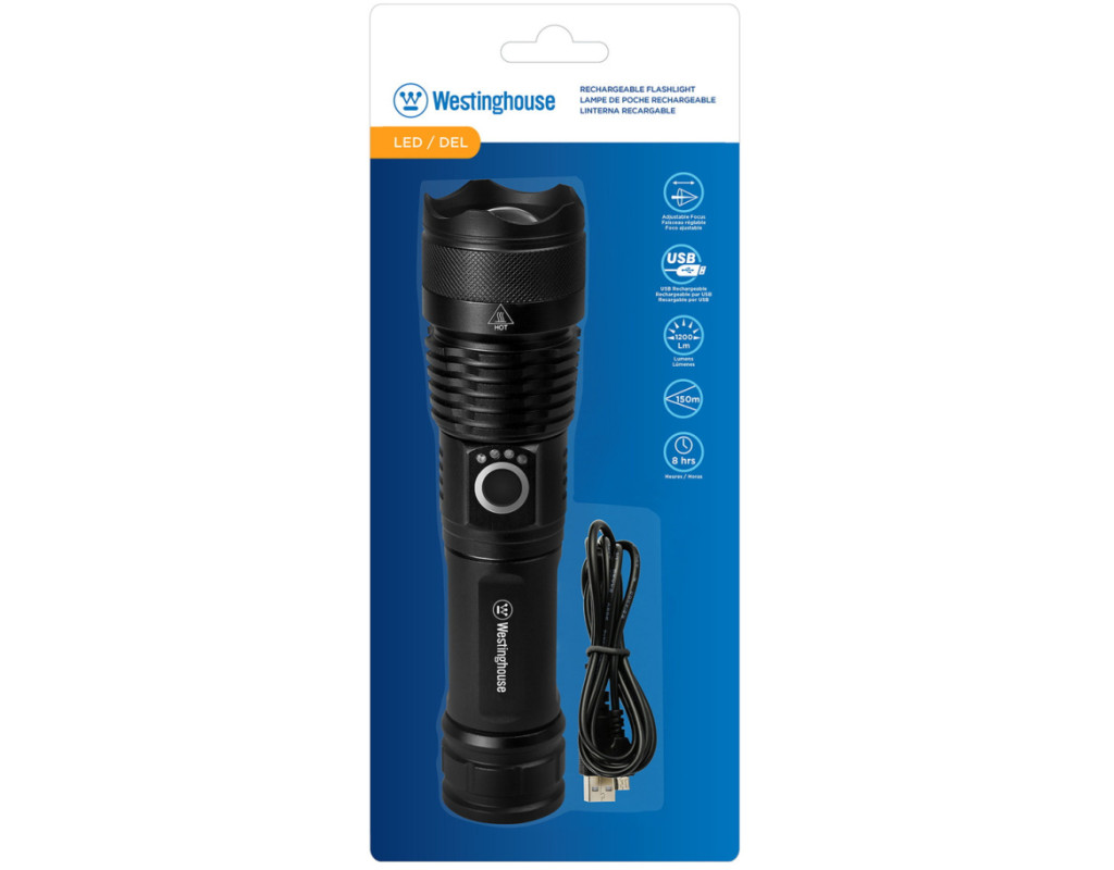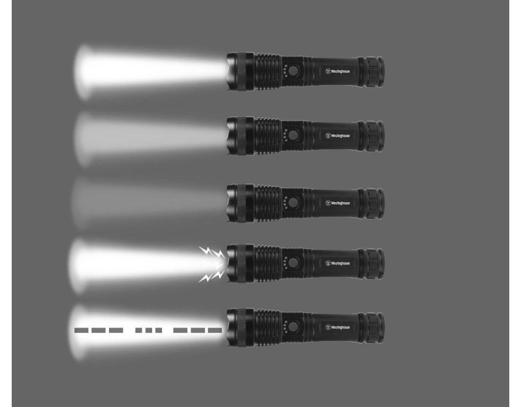 Акумуляторний ліхтарик Westinghouse WF393 поєднує в собі сучасні технології і надійну продуктивність. Міцний і надійний ліхтар виготовлений з високоякісного авіаційного алюмінію і тому стійкий до атмосферних впливів, подряпин, стирання та корозії. Цей ліхтарик має п’ять режимів освітлення: 100%, 50%, 25%, стробоскопічний та SOS. Також є можливість регулювання фокусу променю. Потужний світловий потік (1200 лм) та надвелика відстань променю (150м) створює яскравіше світло і ширший діапазон видимості, ніж стандартний ліхтарик. WF393 оснащений портом Micro-USB для зарядки акумулятора з індикатором зарядки, максимально 8-годин роботи при повній зарядці. Завдяки міцній тактичній конструкції ви можете розраховувати на ліхтар в екстремальних умовах в приміщенні та на відкритому повітрі – це ідеальний вибір для кемпінгу, рибальства, мисливства й інших видів активного відпочинку. Технічні характеристики: