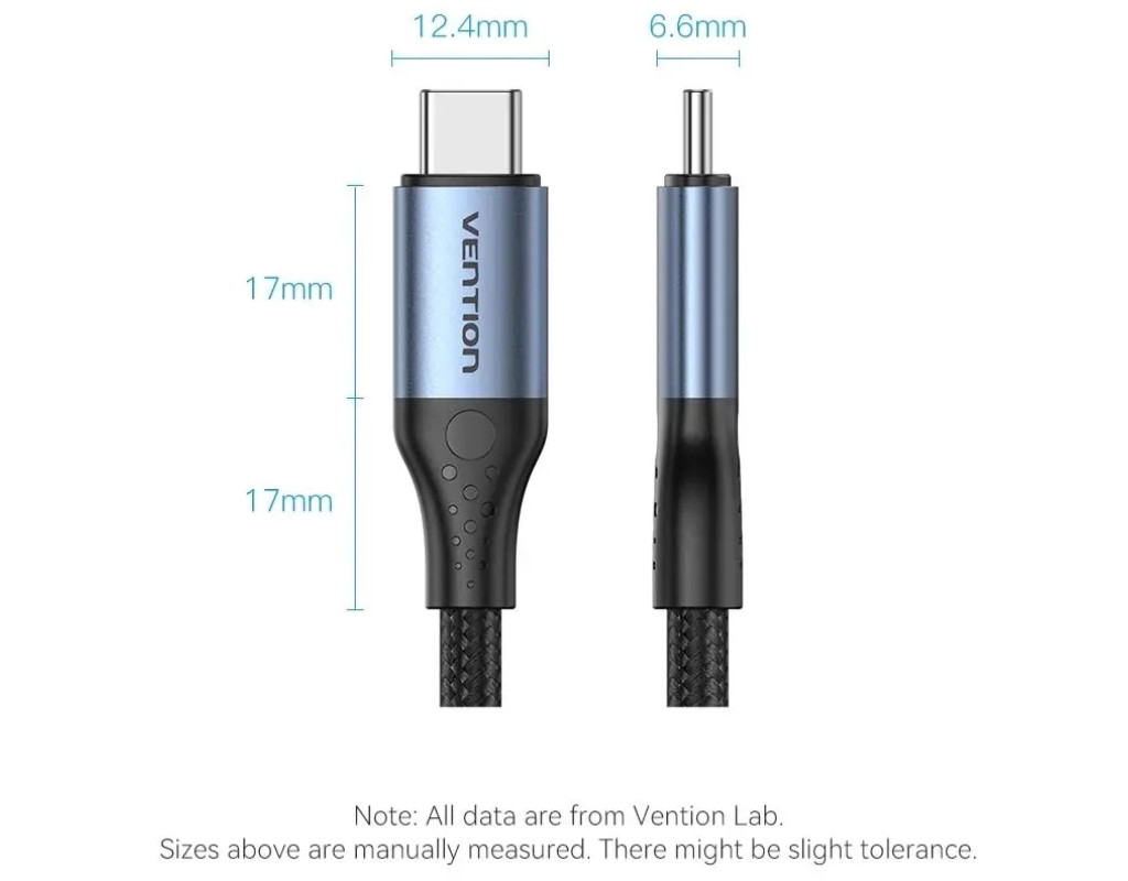 Дата кабель USB-C to USB-C 1.0m Thunderbolt 4 240W (50V/5A) 8K60Hz Gray Aluminum Alloy VENTION (TAVHF)
