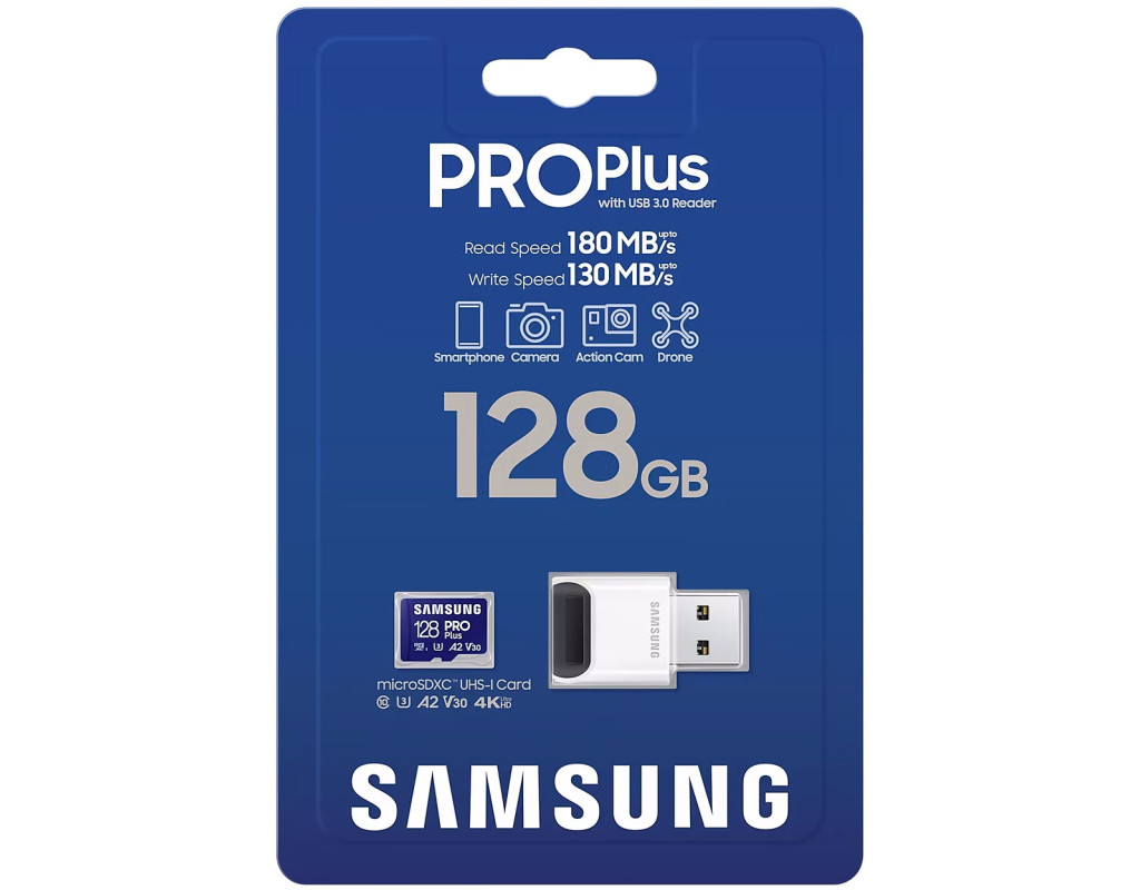| Пам’ять, яка вам потрібна Samsung Pro Plus SDXC 128 ГБ із зчитувачем