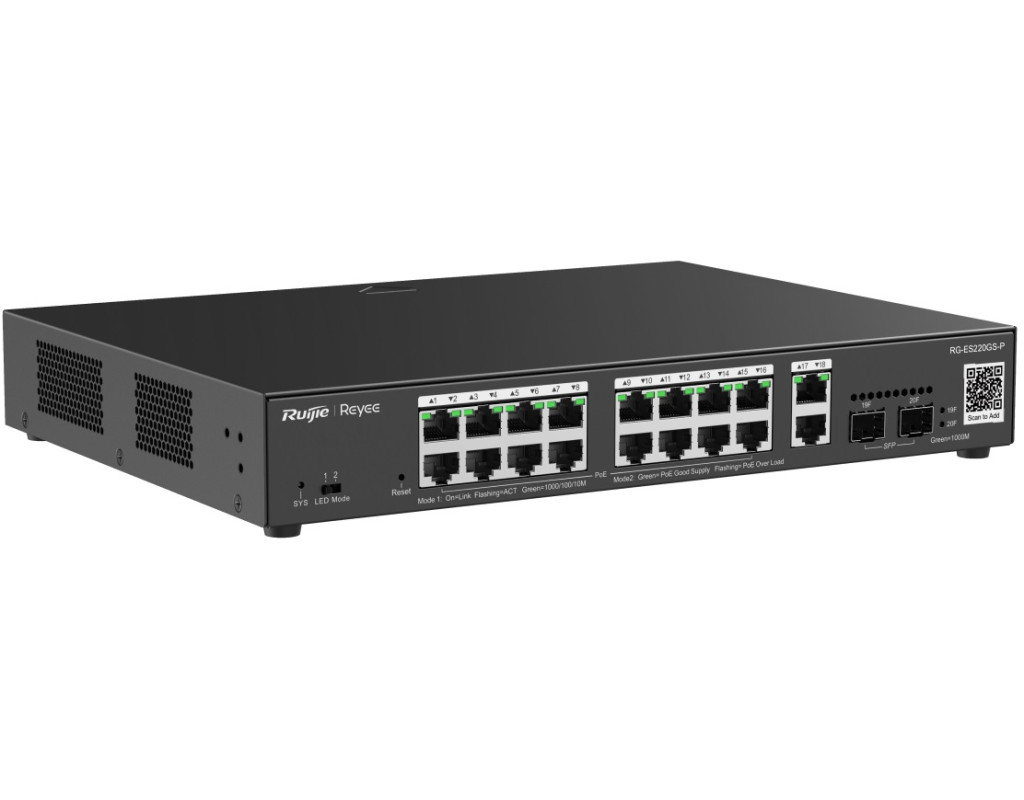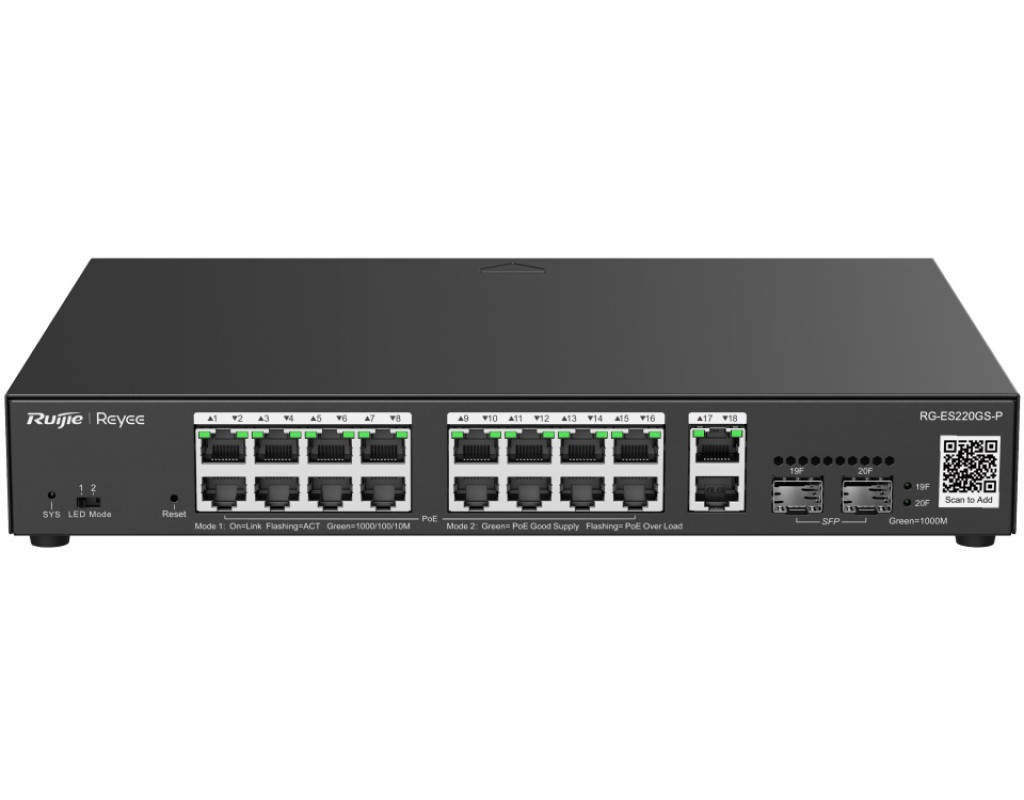 | 20-портовий гігабітний керований комутатор із 16 портами PoE+, 2 портами RJ45, 2 портами SFP
