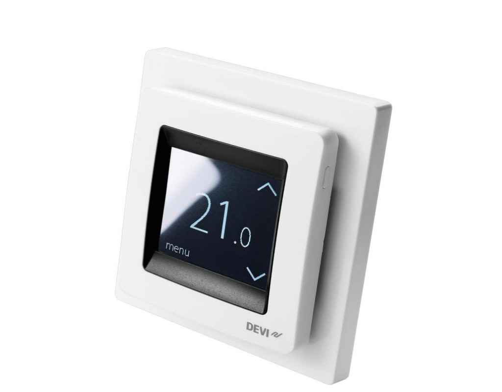 Багатофункціональний мікропроцесорний програмований терморегулятор з сенсорним управлінням. Оснащений вбудованим датчиком температури повітря. Може працювати з датчиками температури підлоги різних виробників. Devireg Touch застосовується для систем повного опалення або для систем Тепла підлога. Має інтелектуальний таймер з розрахунком часу включення. Конструкція корпусу передбачає установку на стіну в монтажну коробку. |