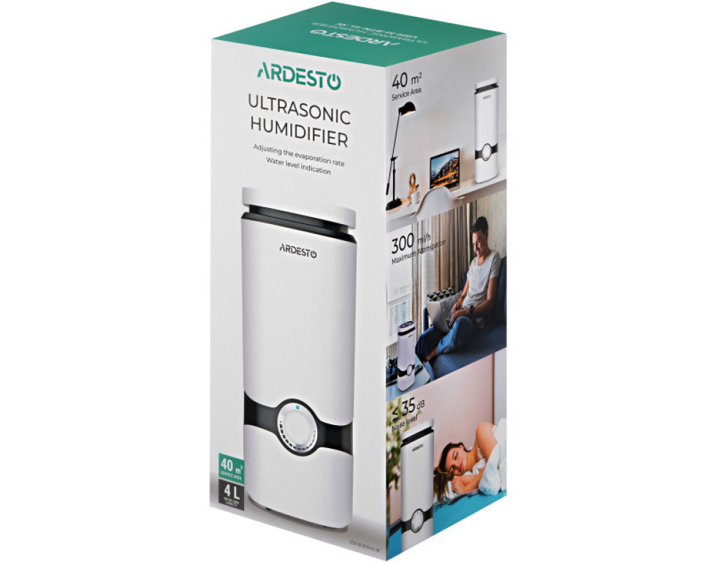 Зволожувач повітря Ardesto USH-M-BTN-4L-W - ультразвуковий зволожувач повітря від компанії Ardesto. Такий функціональний пристрій необхідний в будинках, де є потребою контроль за показниками повітря. Такий пристрій очищає і зволожує повітря, насичує його активними кисневими молекулами і вбризкує воду. Зволожувач управляється механічним шляхом за допомогою поворотного перемикача. Важливі характеристики Ardesto USH-M-BTN-4L-W здійснює контроль вологості в повітрі завдяки спеціальним датчикам, вони мають чутливу структуру і тому вимірюють дані показники особливо точно. Також є можливість автоматичного відключення, якщо всі показники в нормі або в разі закінчення води в резервуарі. Вода надходить в резервуар завдяки верхньому затоці. Інші показники Ardesto USH-M-BTN-4L-W оснащений функцією легкого очищення, через верхнє відкриття ємності. Пристрій може працювати в автономному режимі, максимальний час роботи становить до 10-ї годин. Продуктивність пристрою становить 300 мл / год. Також можна самостійно регулювати вологість, автоматичне вимикання при низькому рівні води. Деталі Ardesto USH-M-BTN-4L-W можна купити за доступною ціною, товар знаходиться в середній ціновій категорії. Рекомендована площа використання в житловому приміщенні становить 40 м2. Потужність пристрою складає 28 Вт, місткість резервуара для води становить 4 літри. |