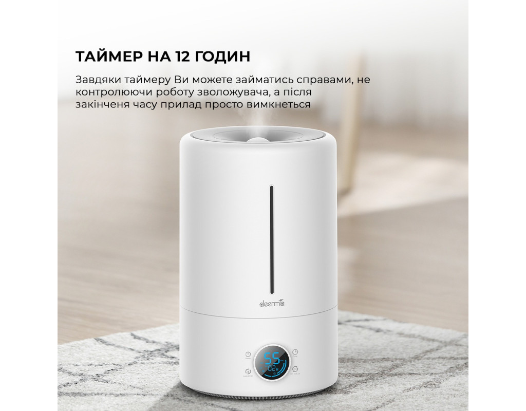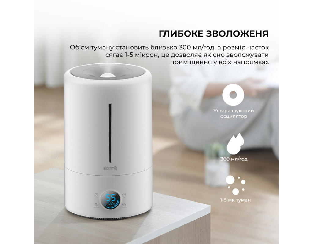 Сухе середовище, є одним із чинників, які подразнюють слизові оболонки рота, носа, легень, а це в свою чергу може підвищити ризик захворюваності на інфекційні та бактеріальні хвороби. Регульований рівень розпилення води Зволожувач повітря Deerma DEM-F682 5L оснащений широким і плоским впускним отвором, через яке частинки води, під впливом ультразвукової вібрації, розпорошуються вгору у вигляді димки, дозволяючи уникнути змочування столу та інших меблів. Крім того, дуже зручно регулювати кількість розпилювання води, всього одним поворотом механічного перемикача. Зволожувач з високою пропускною здатністю і УФ-лампою Зволожувач Deerma DEM-F682 з продуктивністю 300 мл/год і місткістю 5 л забезпечує рівномірний розподіл водяної димки і підходить для кімнати площею 25-30 м2. Крім того, він обладнаний УФ-лампою, яка стерилізує воду перед її розпиленням в повітря. Розумні робочі алгоритми DEM-F628S UV здатний відстежувати вологість і температуру навколишнього середовища. Розумні алгоритми пристрою, забезпечує підтримку оптимального діапазону рівня вологості та припиняє процес зволоження, коли цей оптимальний показник досягнутий. Вбудований LED-дисплей Але і це ще не все. Зволожувач має вбудований LED-дисплей, на якому відображається поточна температура, вологість в приміщенні, а також режим роботи. Низький рівень шуму Компактні габарити, стильний дизайн, висока продуктивність і низький рівень шуму при роботі зволожувача (до 35 дБ), роблять його дуже зручним пристроєм для повсякденного створення сприятливої атмосфери в житловому і робочому приміщенні. |