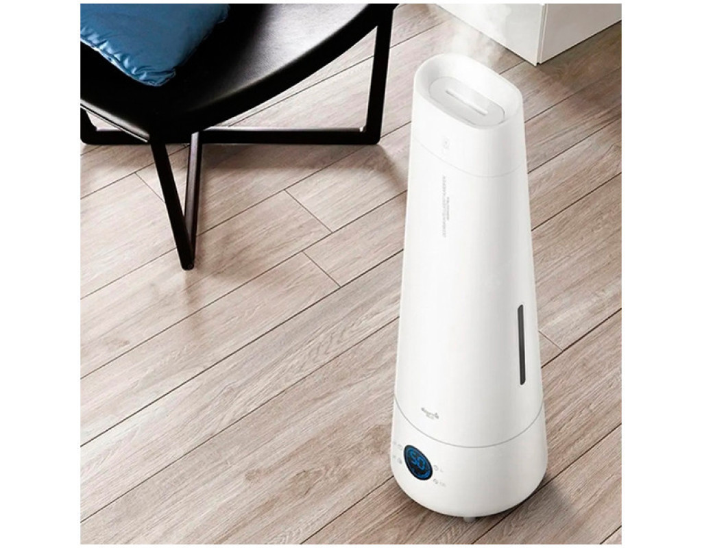 Зволожувач повітря Deerma DEM-LD220 Зволожувач повітря Deerma DEM-LD220 представлений в елегантному дизайні. Його тонкий витончений корпус виготовлений з АБС-пластика, який навіть з часом не втрачає свою білизну. Яскравим акцентом в дизайні виступає круглий LCD-дисплей з приємною блакитною підсвіткою, на якому відображається вся інформація про роботу приладу. Завдяки витягнутій формі зволожувач буде мати гарний вигляд як на підлозі, так і на узвишші. Завдяки вдосконаленій системі подачі димки водяна суспензія не осідає на поверхнях, повністю розчиняючись в повітрі і забезпечуючи якісне і ефективне зволоження атмосфери в приміщенні.